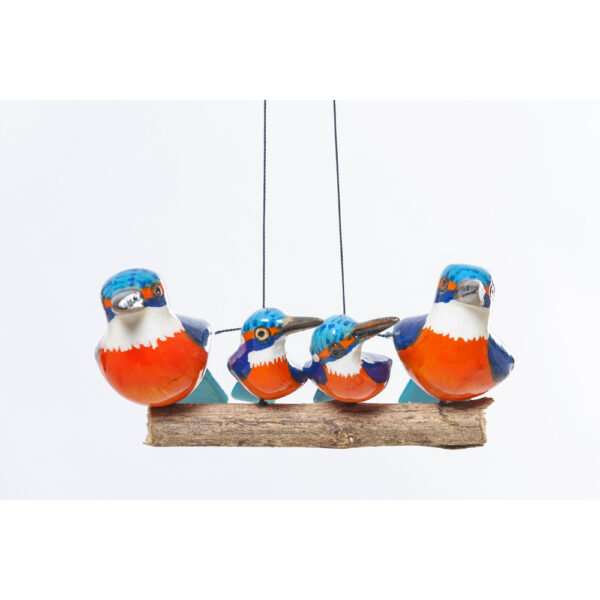 4 Eisvögel aus Metall auf einem Ast