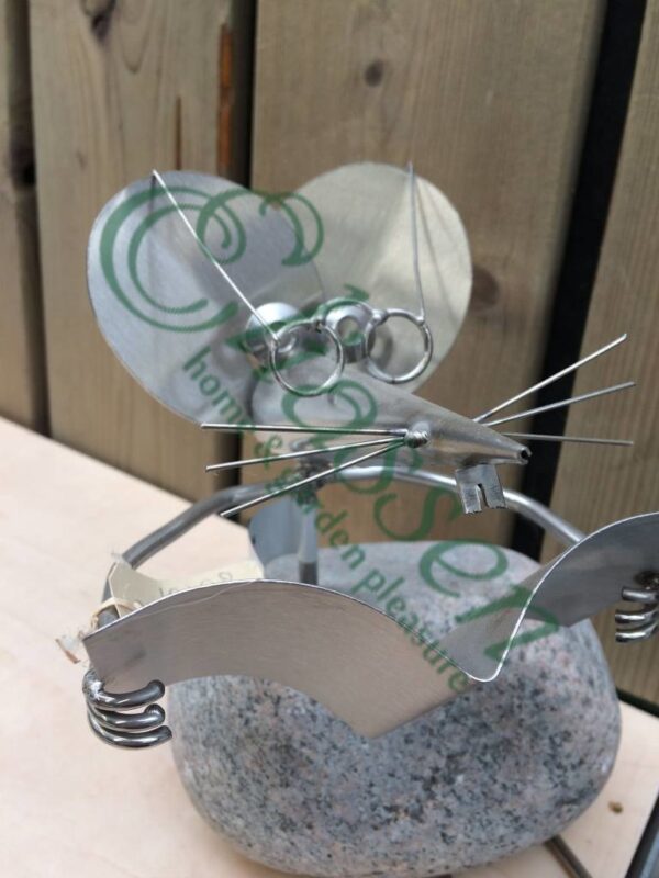 Diese exklusive Figur einer sitzenden Maus mit einem natürlichen Felsbrocken als Körper macht nicht nur im Garten, sondern auch im Haus Spaß. Stabiler Stand, mit einer Lebensdauer unter normalen Bedingungen. Ganz aus rostfreiem Stahl handgefertigt. Da es sich um ein handgefertigtes Exemplar handelt, wird es bei jedem Exemplar leichte Unterschiede im Vergleich zum Foto geben. Auch der Boulder kann sich in Farbe und Form unterscheiden, was nicht reklamiert werden kann.