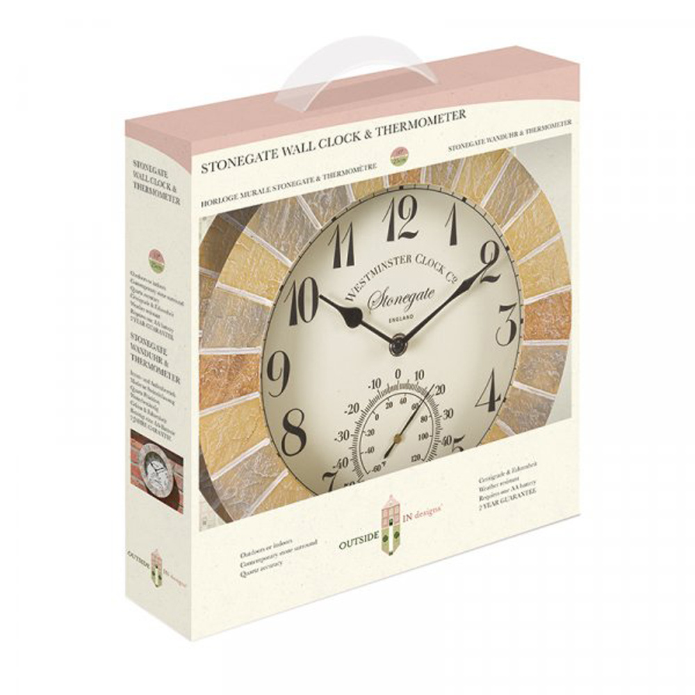 Außenuhr in Steinoptik mit Uhrwerk und Thermometer