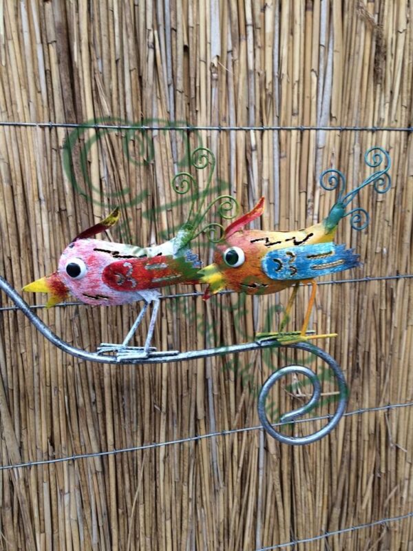 Wunderschön gearbeitete Metallwaage mit Fantasievögeln und einem Huhn, die Sie überall im Garten aufstellen können. Es wird sich im Wind bewegen und drehen. Eine Zierde im Garten und schön zum Verschenken. Vollständig handgefertigt und bemalt.