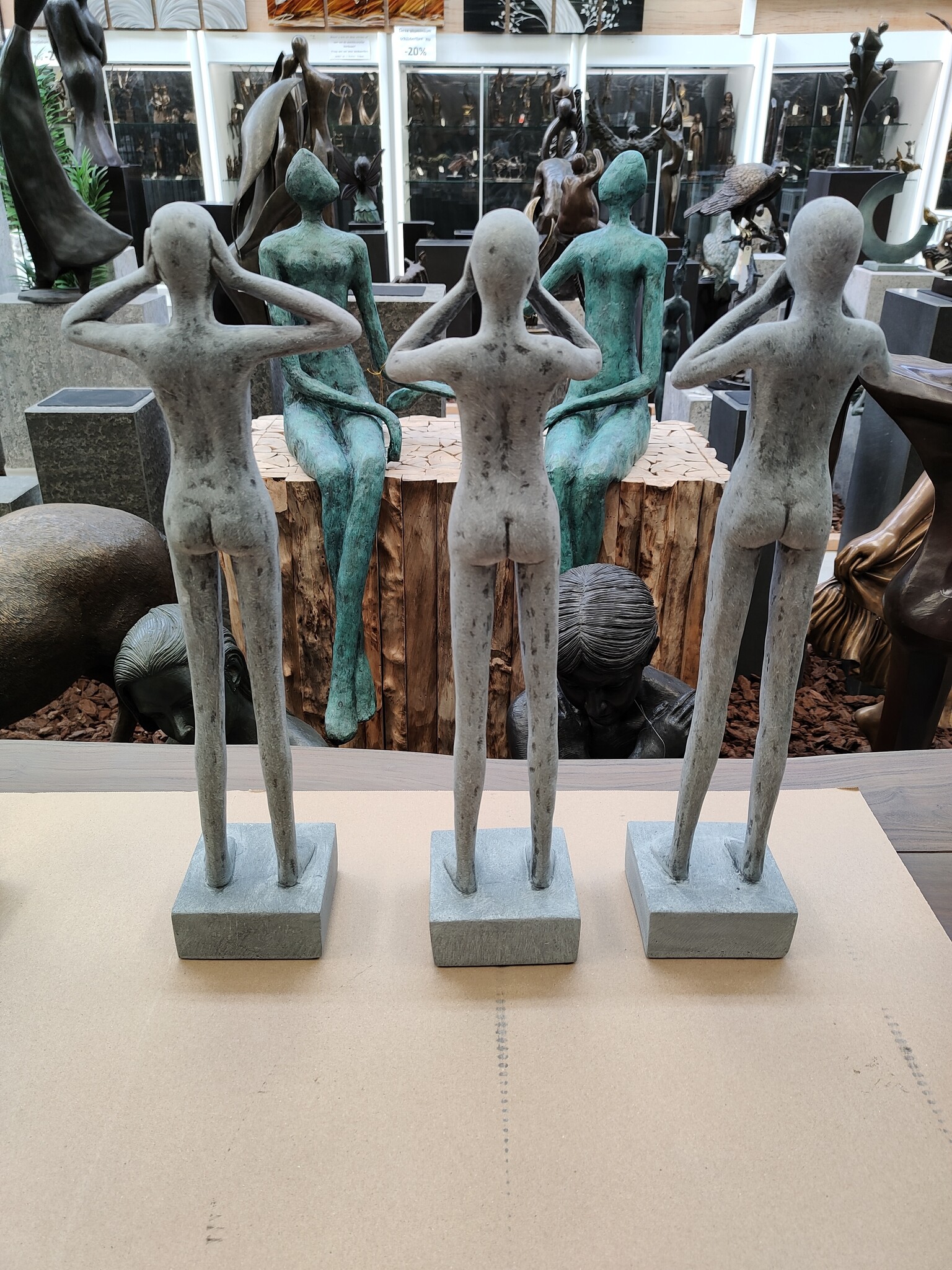 Set aus 3 grauen Statuen hören sehen schweigen 50cm