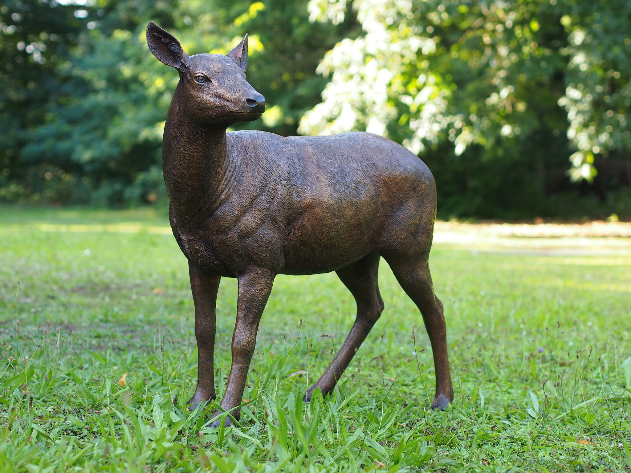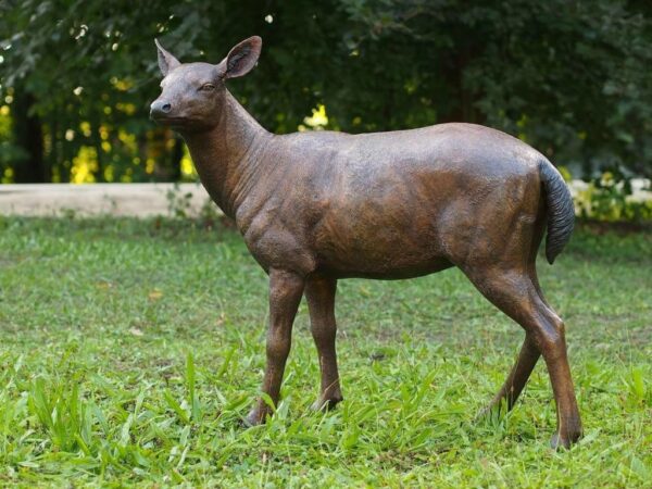 Wunderschöne Statue eines weiblichen Rehs aus hochwertiger Bronze mit einem Mindestkupfergehalt von 75%, der eine sehr lange Lebensdauer gewährleistet.