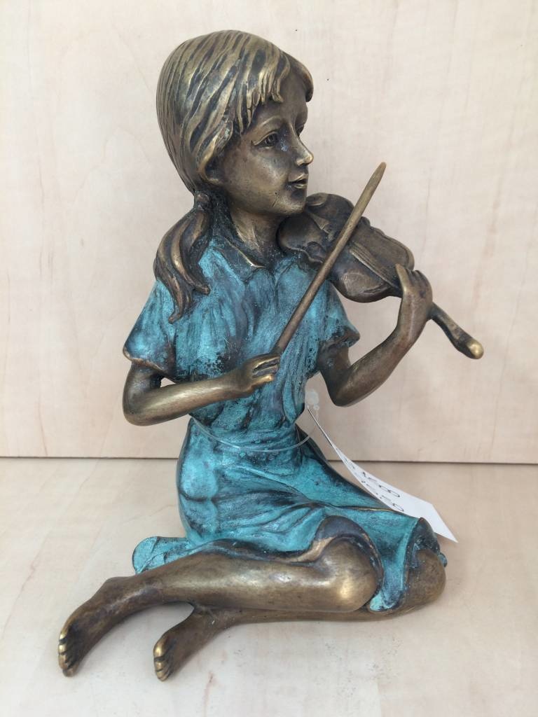 Wunderschöne Statue eines Mädchens mit einer Geige aus hochwertiger Bronze mit einem Mindestkupfergehalt von 75%, was eine sehr lange Lebensdauer garantiert.