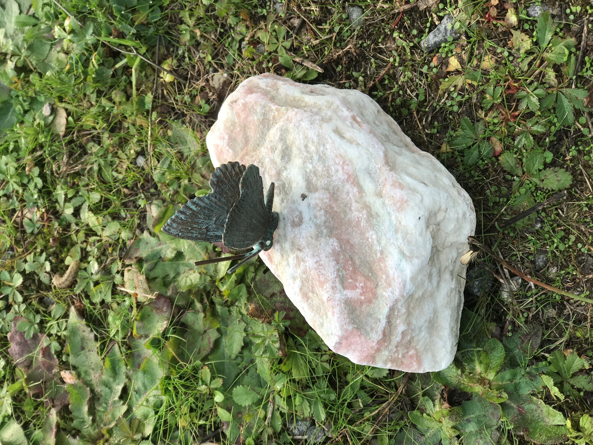 Wunderschöne Figur eines Schmetterlings aus hochwertiger Bronze, auf einem großen Stück rosa Granit aus dem Schwarzwald. Diese Bronze ist von hoher europäischer Qualität, mit einem Mindestkupfergehalt von 75%, was eine sehr lange Lebensdauer gewährleistet. Da es sich um ein Naturprodukt handelt, weichen Form und Farbe immer vom Foto ab.