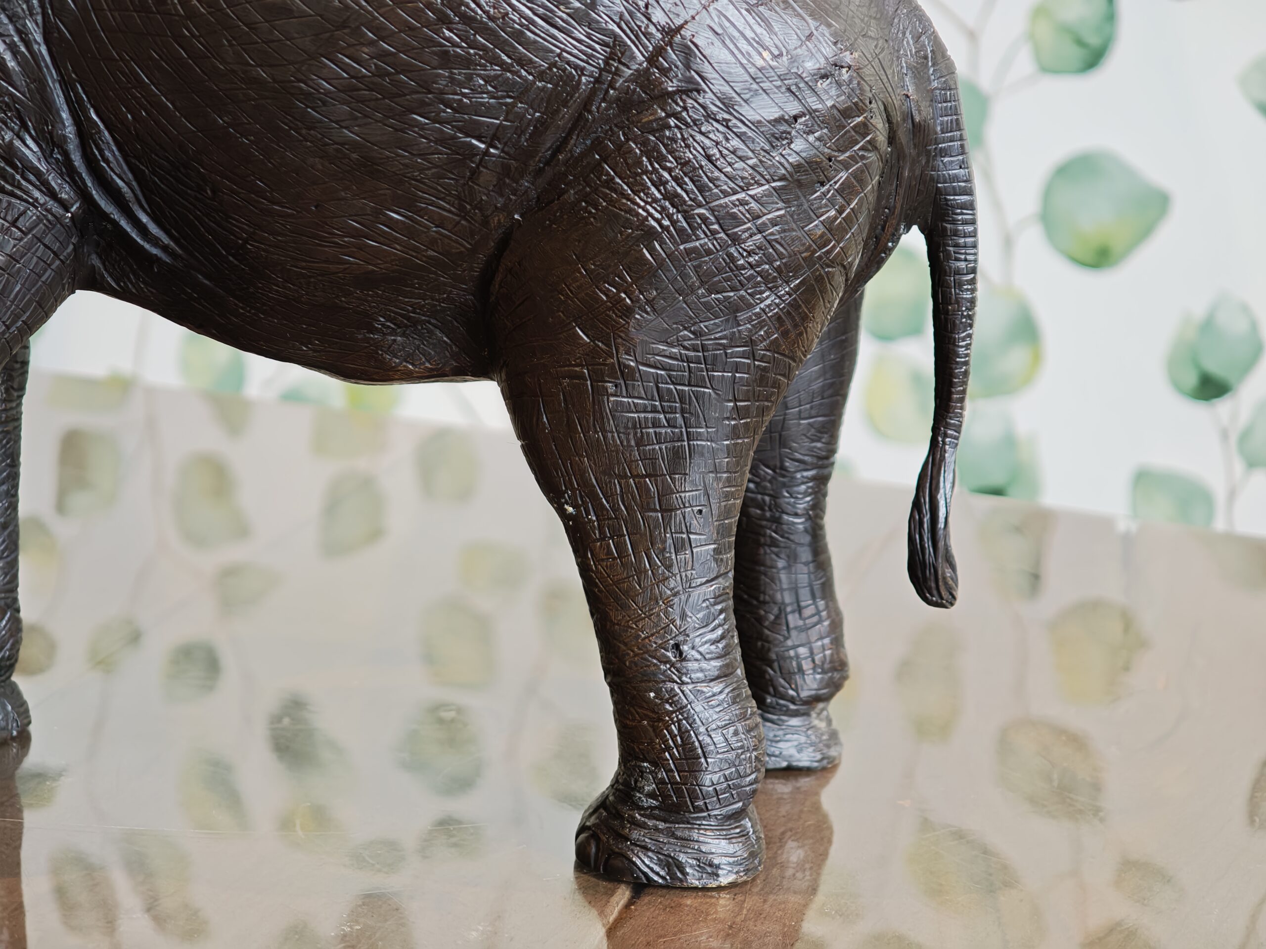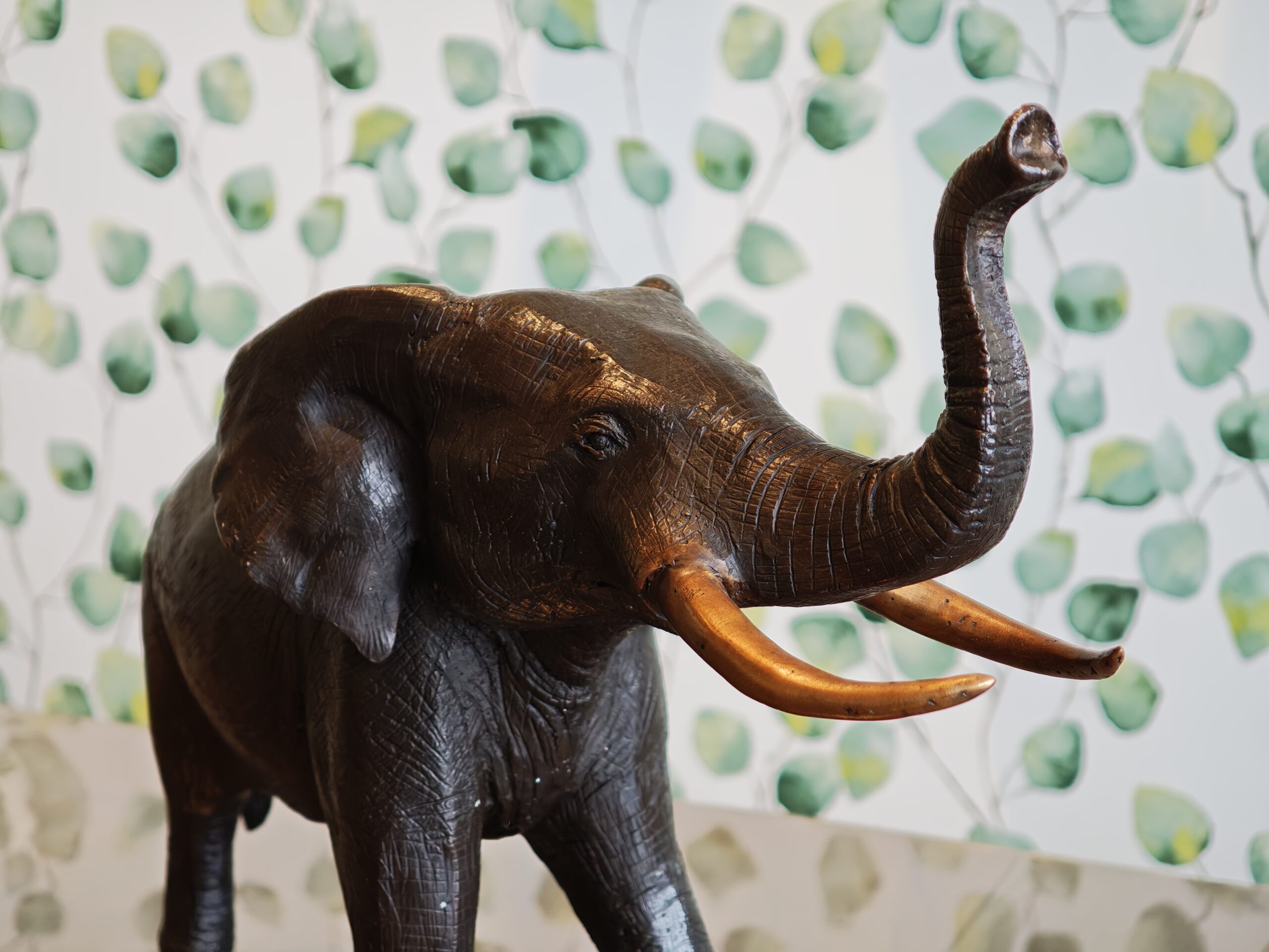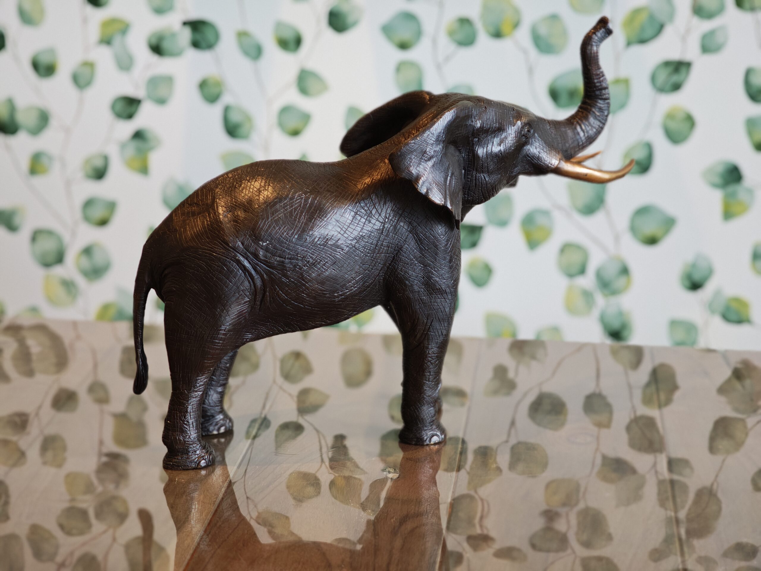 Wunderschön gestaltete Skulptur eines Elefanten, hergestellt aus 100% Bronze mit einem Kupferanteil von mindestens 75%.