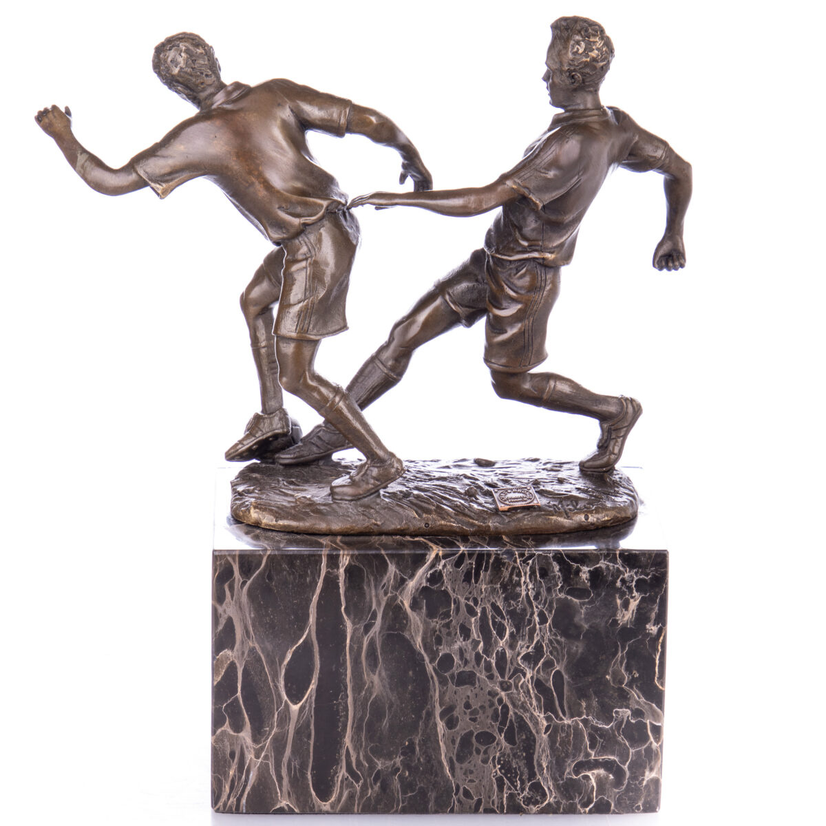 Dieses Bronzemodell von 2 Fußballern ist ein schönes Stück für Sie selbst oder als Geschenk für eine Party oder ein Jubiläum.