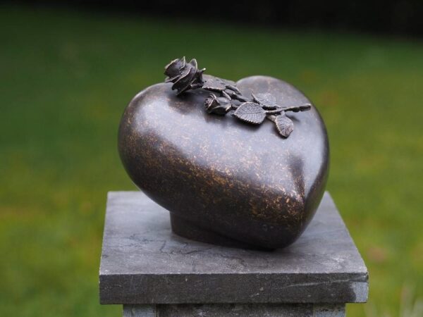 Eine Urne mit Rose, die möglicherweise für die Asche eines geliebten Menschen geeignet ist. Für den Innen- oder Außenbereich, mit Einfüllschraube an der Unterseite. Ganz aus Bronze gefertigt. Die für diese Skulptur verwendete Bronze hat einen Mindestkupfergehalt von 75%, wodurch Oxidation oder andere seltsame Flecken vermieden werden.
