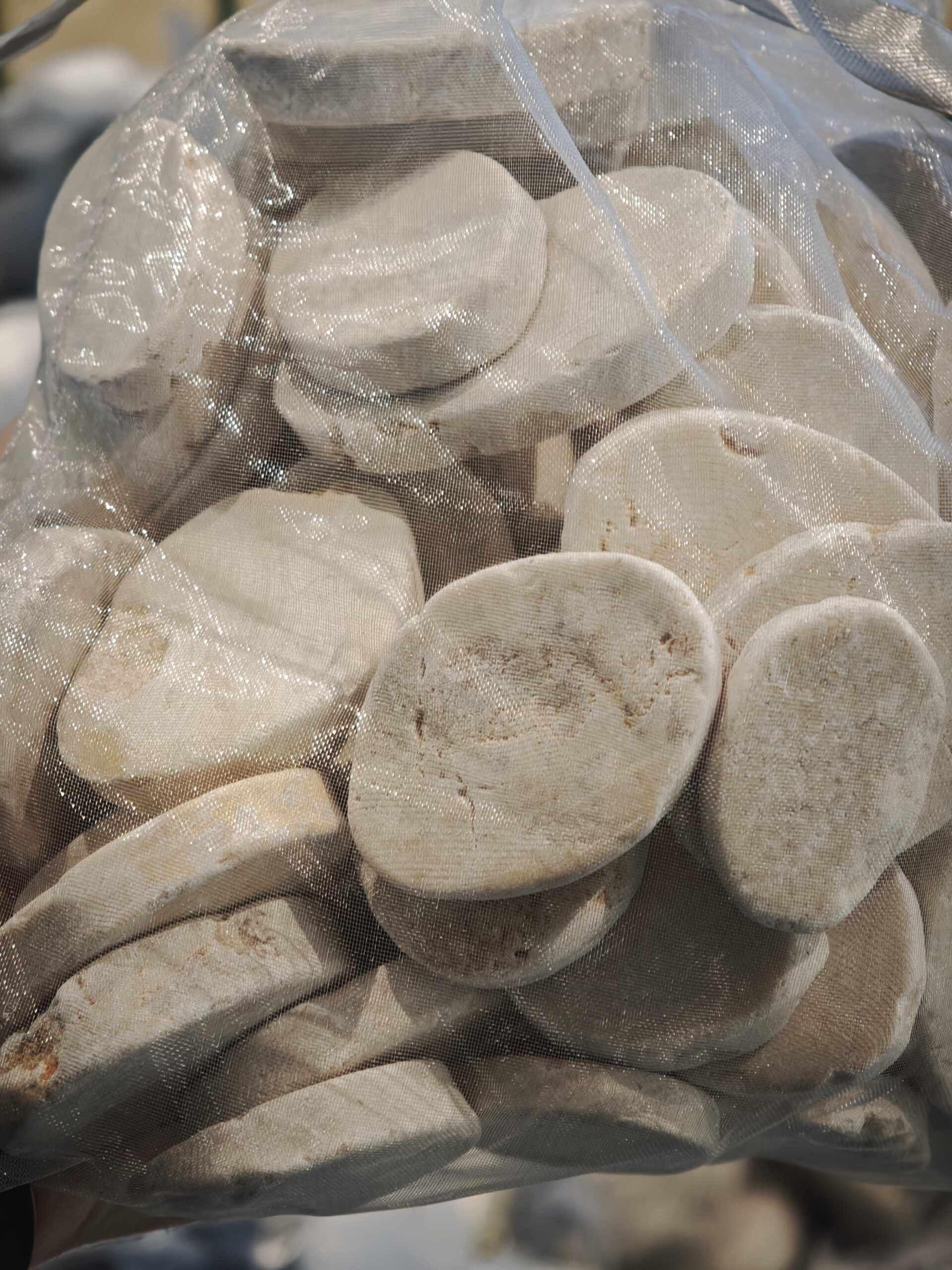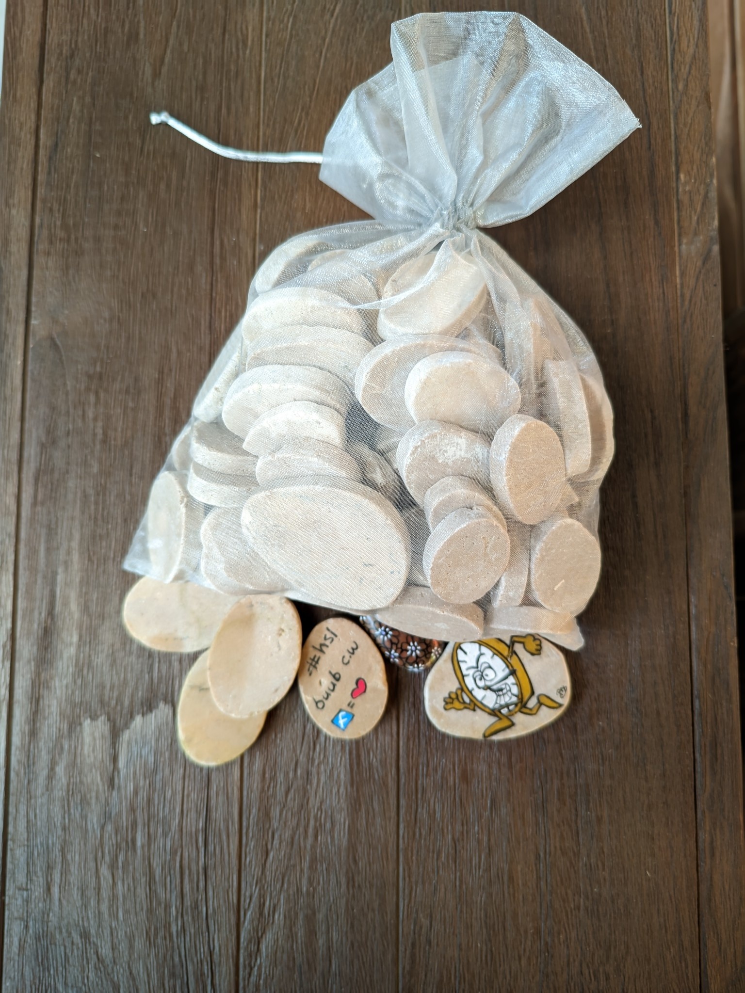 Diese Malersteine wurden gewaschen und sortiert; es befinden sich praktisch keine zerbrochenen oder halben Steine in der Tasche. Nur die besten dekorativen Felsbrocken aus den Säcken wurden für diese sortierten Säcke zum Bemalen ausgewählt. In manchen Fällen kann nur eine Seite völlig glatt sein.