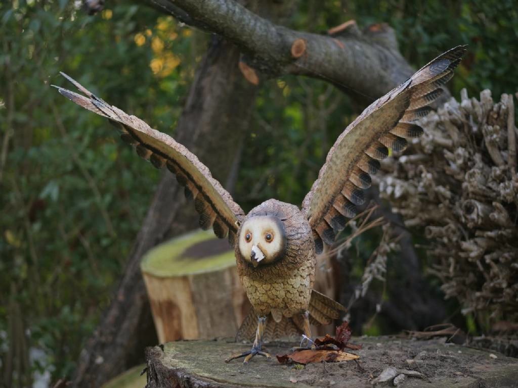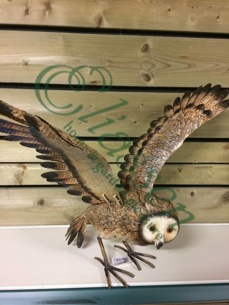 Prächtig gefertigte Metallfigur einer fliegenden Eule in schönen Farben. Diese Tierfigur aus Metall ist ein Juwel in Ihrem Zuhause oder Garten oder sehr schön, um ein Geschenk zu machen. Komplett von Hand gefertigt und bemalt.