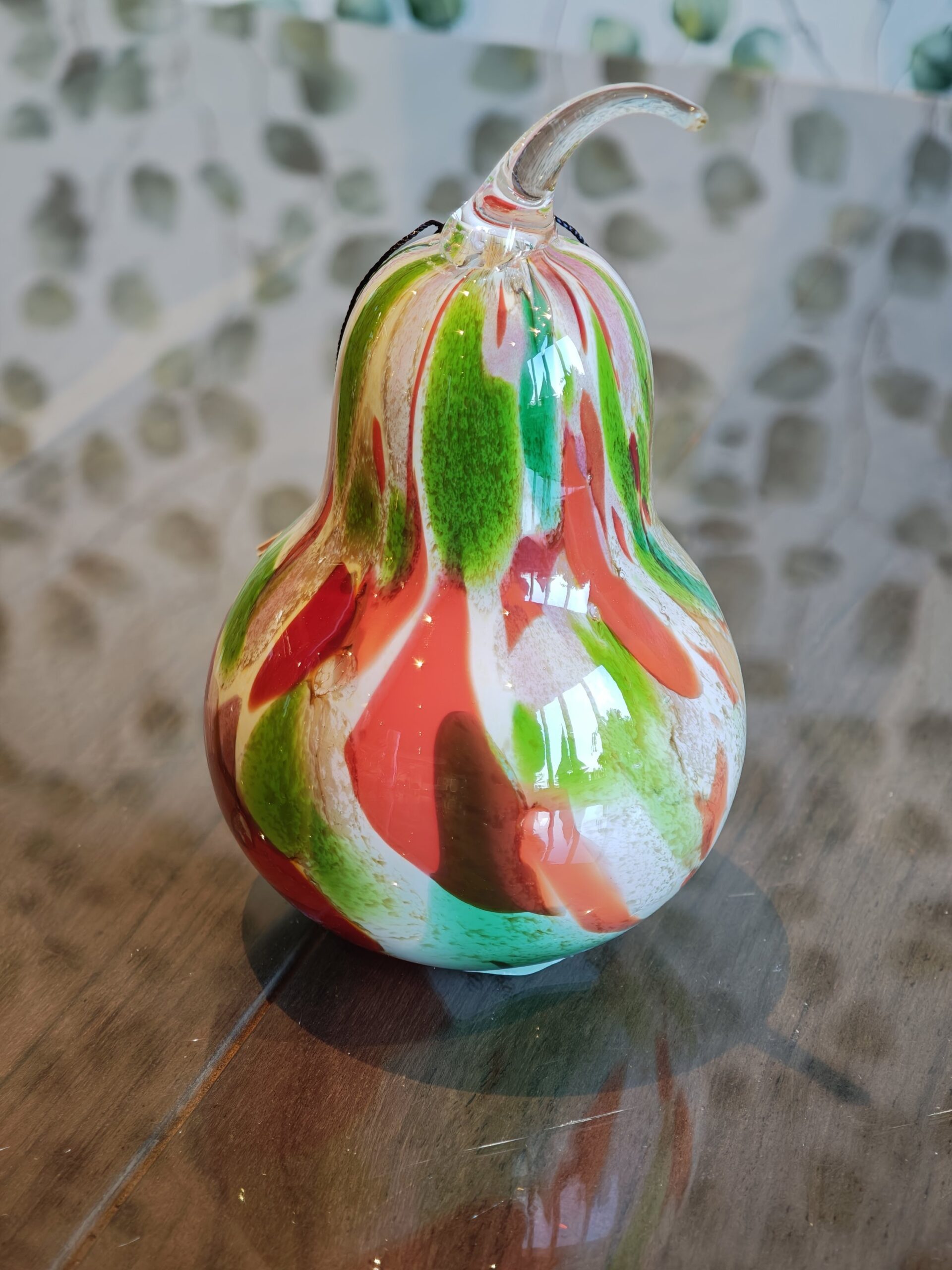 Die organische Form und das hochwertige Glas machen dieses Objekt zu einer stilvollen Dekoration, die auf einer Anrichte, auf der Fensterbank oder als Teil einer größeren Sammlung von Glaswaren großartig aussehen wird. Da es sich um mundgeblasenes Glas handelt, holen Sie sich mit diesem Gegenstand, der sofort die Aufmerksamkeit auf sich zieht, wirklich etwas Besonderes in Ihr Zuhause. Sind Sie neugierig, wie dieses bunte Objekt in Wirklichkeit aussieht? Sie sind herzlich eingeladen, unseren Ausstellungsraum in Ammerzoden zu besuchen und sich in aller Ruhe unsere umfangreiche Kollektion an Glaskunst und anderen Wohnaccessoires anzusehen.