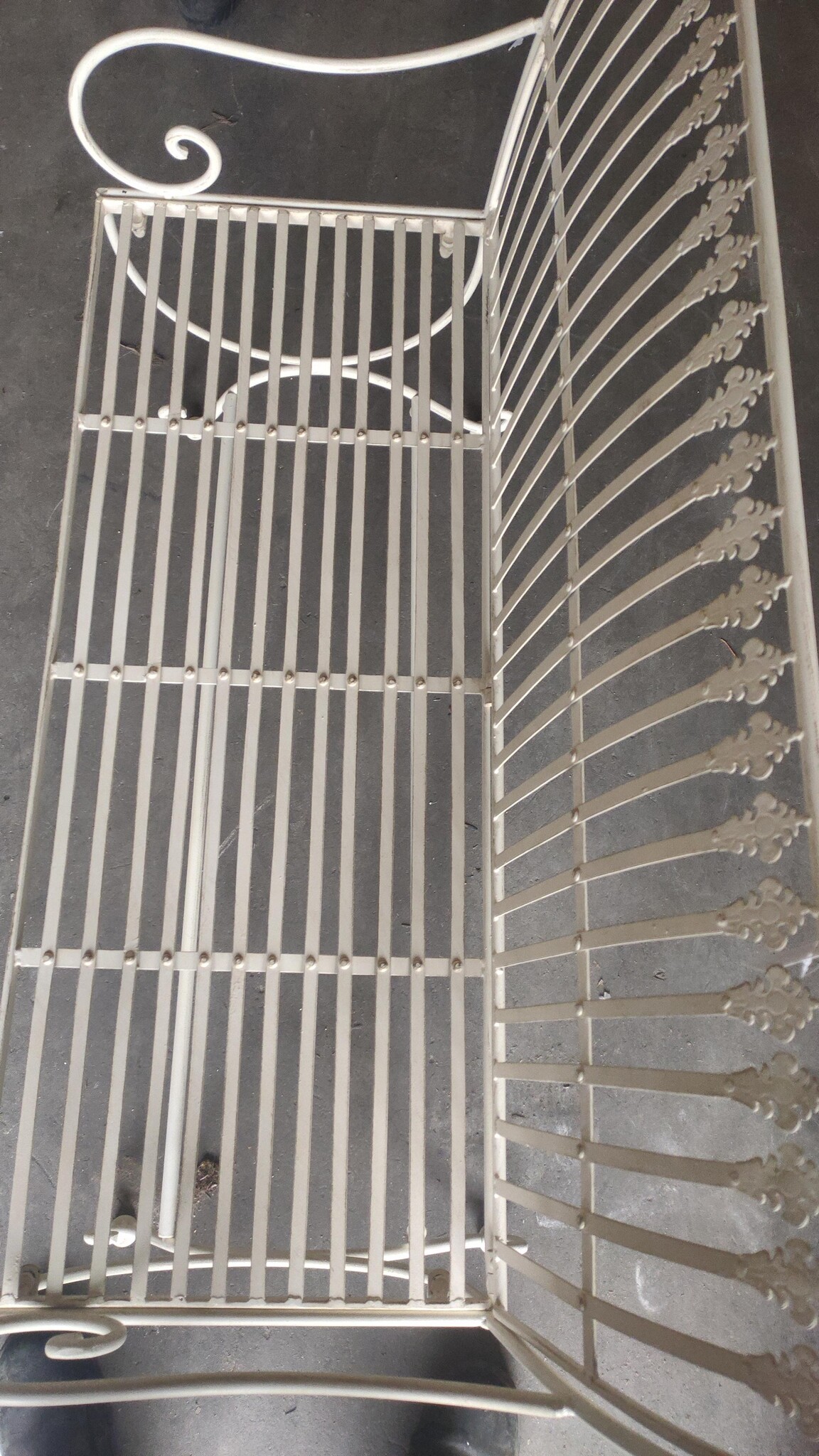 Diese Gartenbank aus Eisen ist ein klassisches und zeitloses Modell. Wunderschön aus Metall gefertigt, in einem schönen alten Weiß lackiert und dann gebräunt, um einen schönen antiken Look zu erzeugen. Diese Bank ist aus massivem Eisen gefertigt. Mit „Ziernieten“.