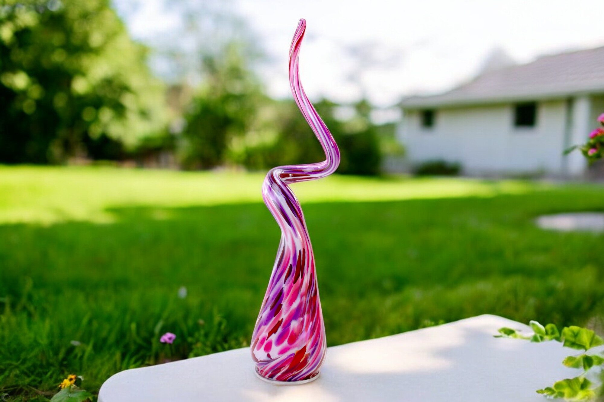Dieser mehrfarbige Gartenstab aus Glas wird in jedem Garten einen schönen Platz finden.