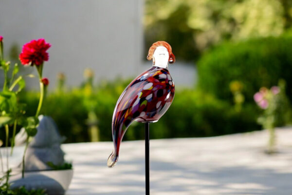 Gartenspieß aus Glas, Papageienrot und mehrfarbig, 27 cm.