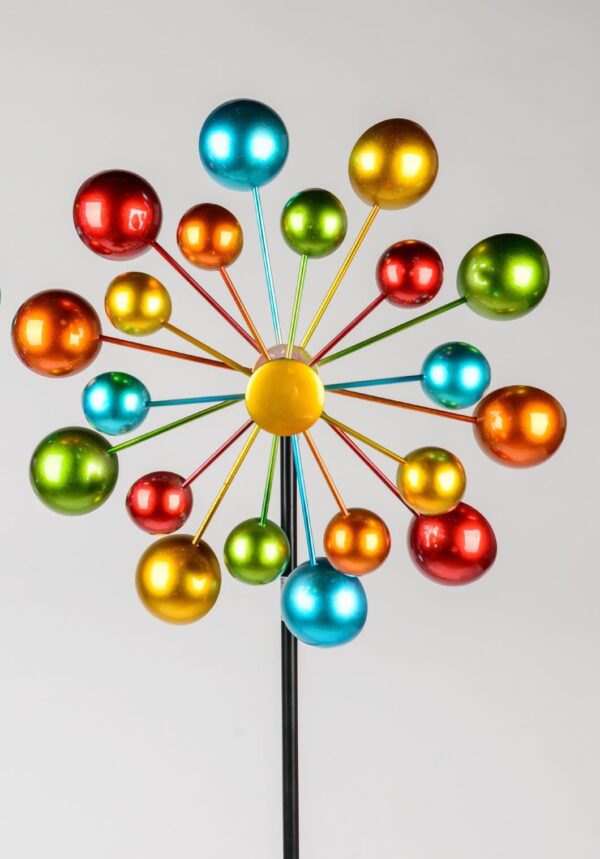 Diese mehrfarbige Mühle ist in jedem Garten ein fröhlicher Blickfang.