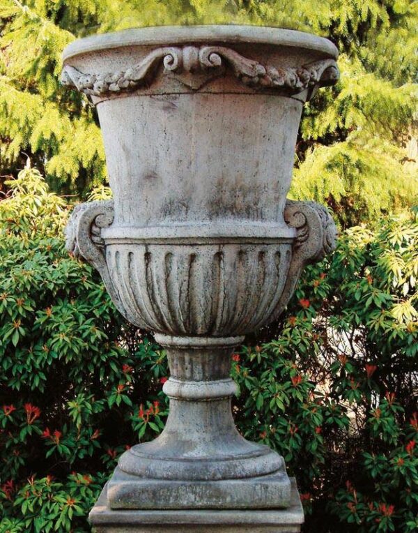 Diese Gartenvase ist aus massivem Qualitätsbeton mit sehr hohem Zementanteil gefertigt, sodass sie allen Witterungseinflüssen problemlos über Jahrzehnte standhält.