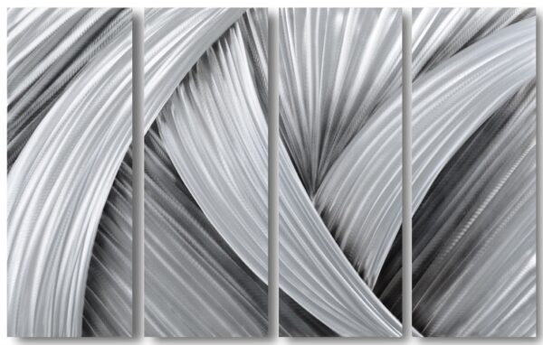 Sind Sie auf der Suche nach einem schönen Füller für eine große Wand und bevorzugen dunkle, ruhige Farben? Dann ist unser handgefertigtes Gemälde Abstraktes Aluminium Schwarz/Grau genau das Richtige für Sie. Das vierteilige Gemälde nimmt viel Platz in Anspruch, aber dafür erhalten Sie eine schön dekorierte Wand. Die dunkle, graue Farbe hält das Bild ruhig und freundlich für das Auge, aber sie verleiht dem Gemälde auch einen schicken Look.