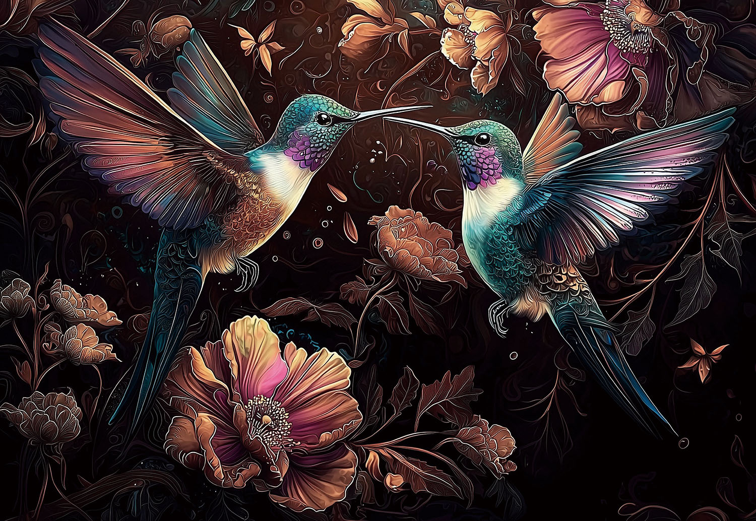 Dies ist ein sehr großer Glasteller mit zwei süßen Kolibris in ruhigen Farben.