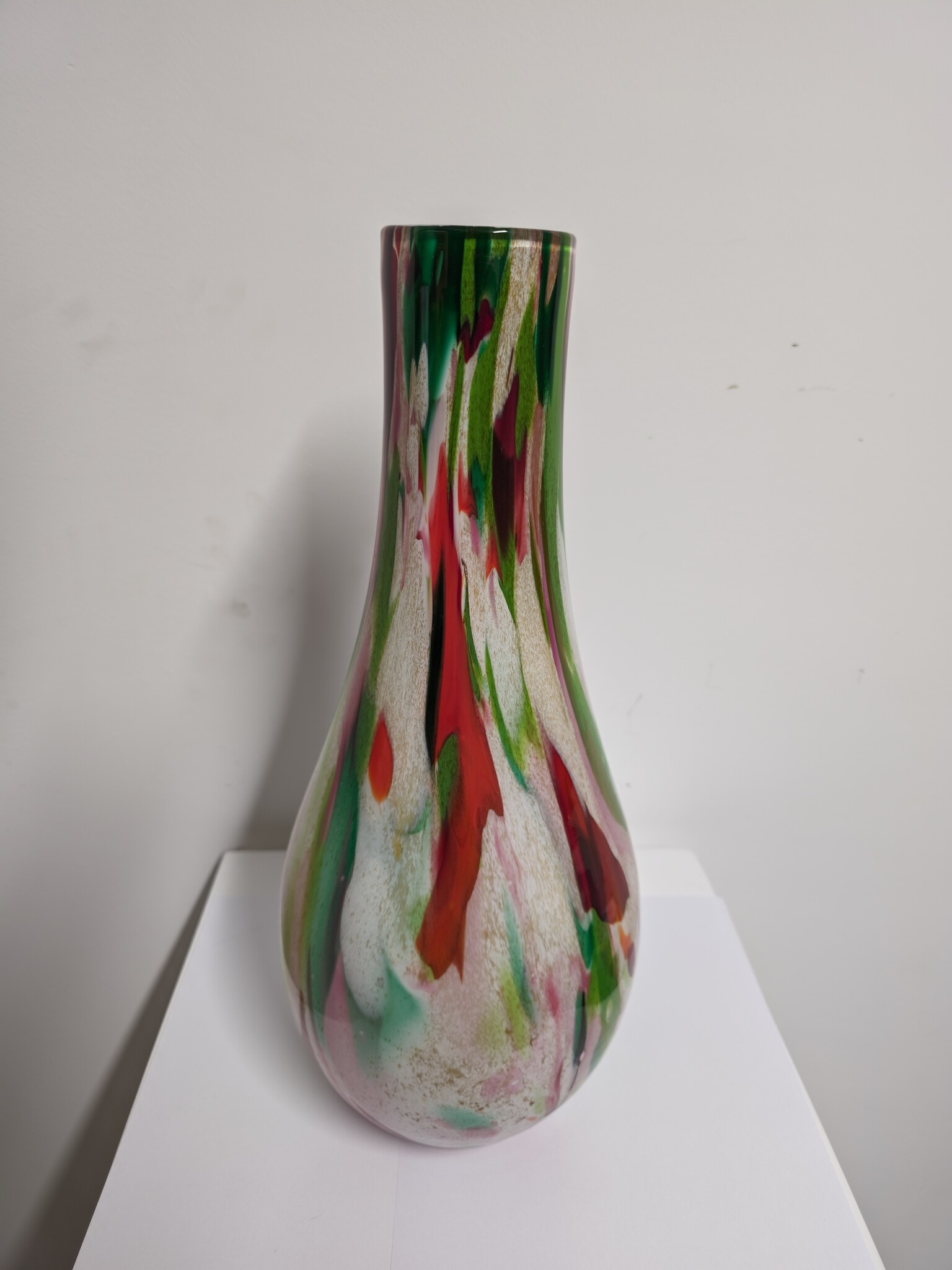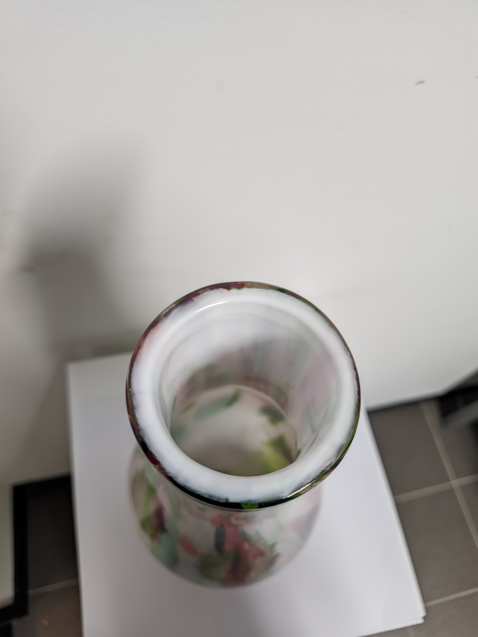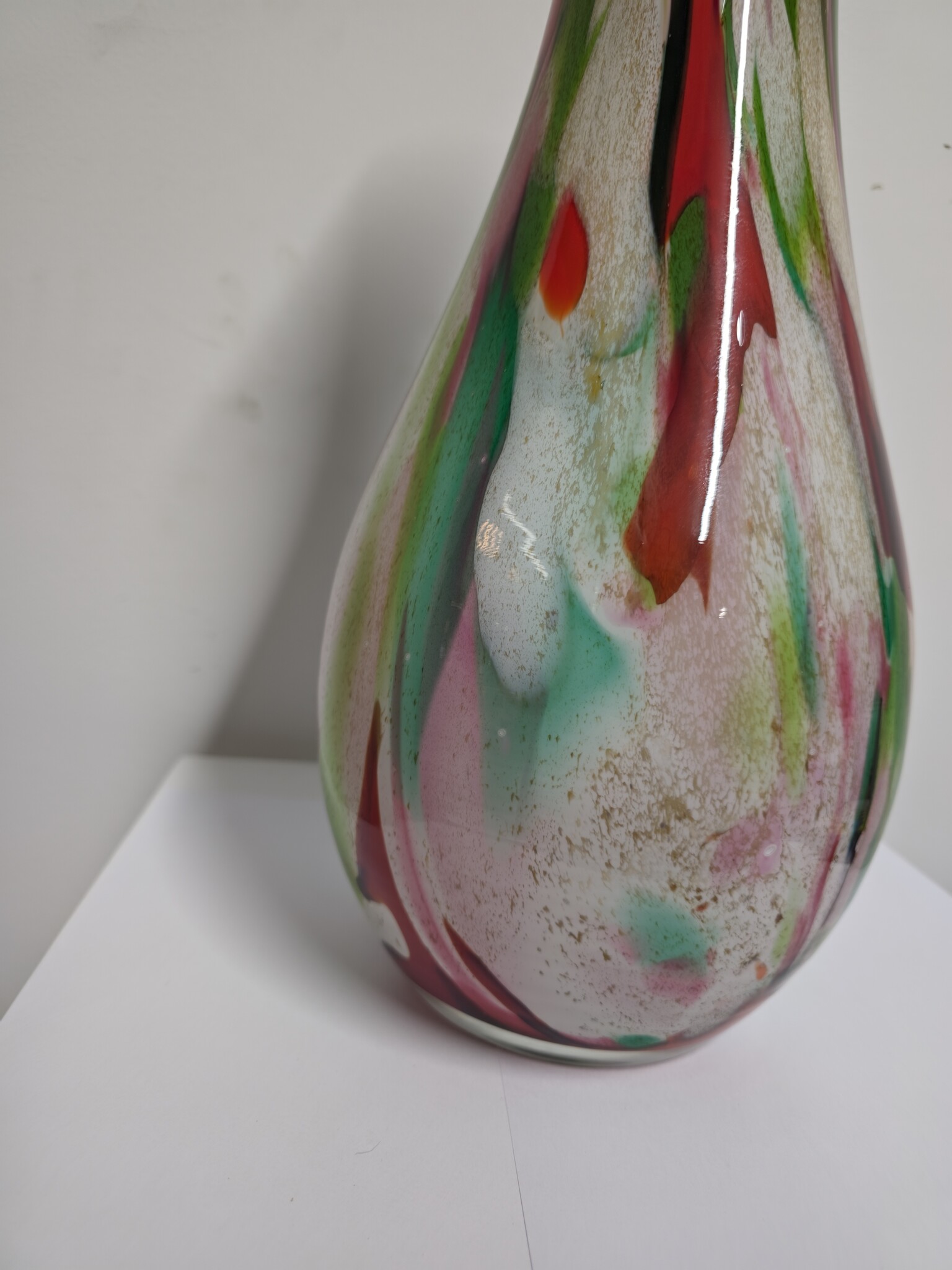 Schöne hohe Glasvase von hoher Qualität. Größe ca. 18×41 cm hoch.
