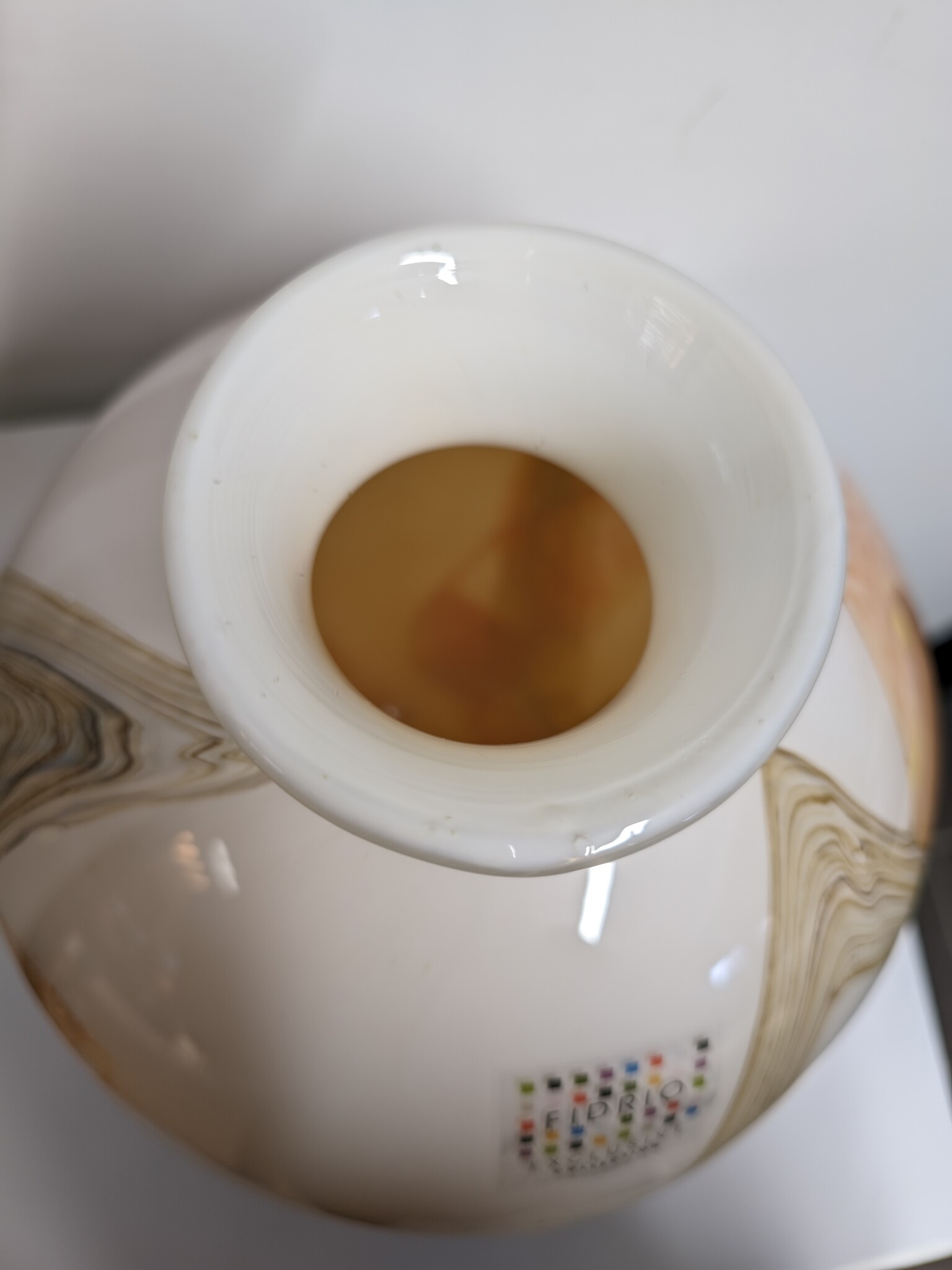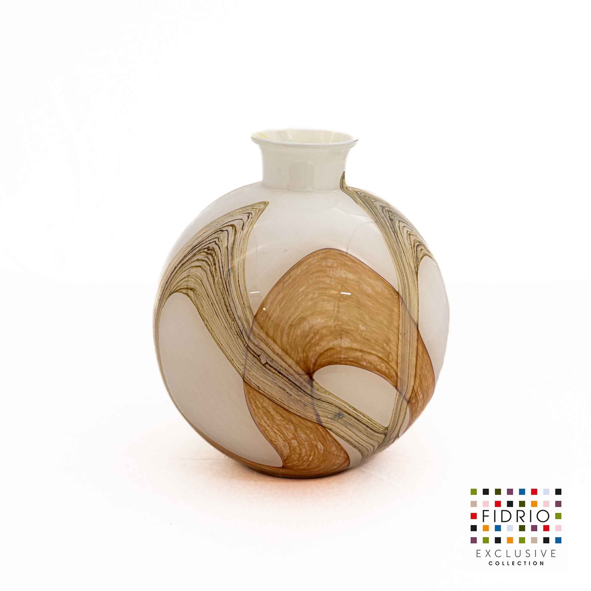Alle Glasvasen von Fidrio werden nach traditioneller, handwerklicher Art und Weise handgefertigt. Das bearbeitbare, superheiße Glas wird in eine Holzform geblasen, wobei die Form als Grundform dient, aber die Farbnuancen und damit das Aussehen bei jeder Vase anders ausfallen werden. Die angegebenen Größen sind immer Circa-Größen.