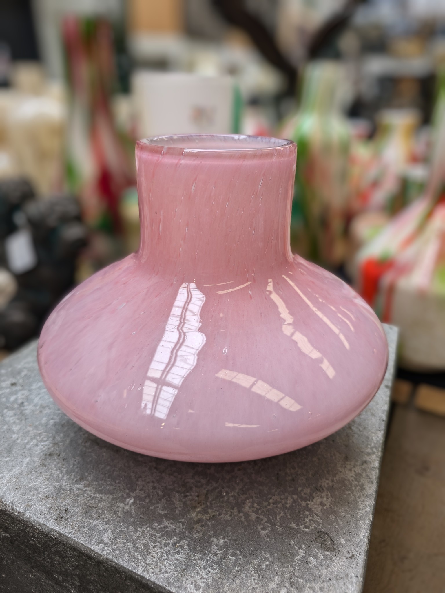 Glasvase Scheibe rosa Dante Rosa Blasen 26cm