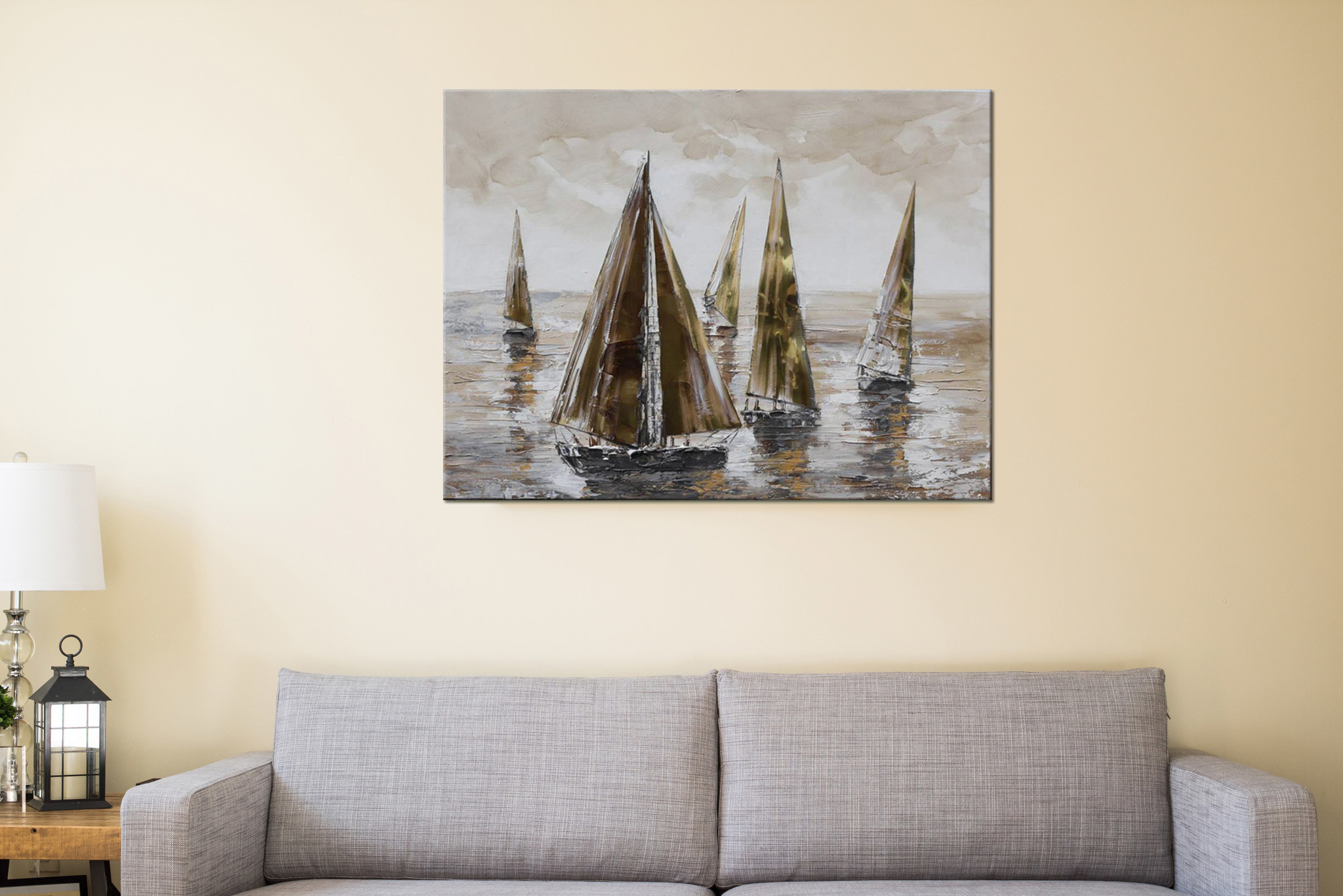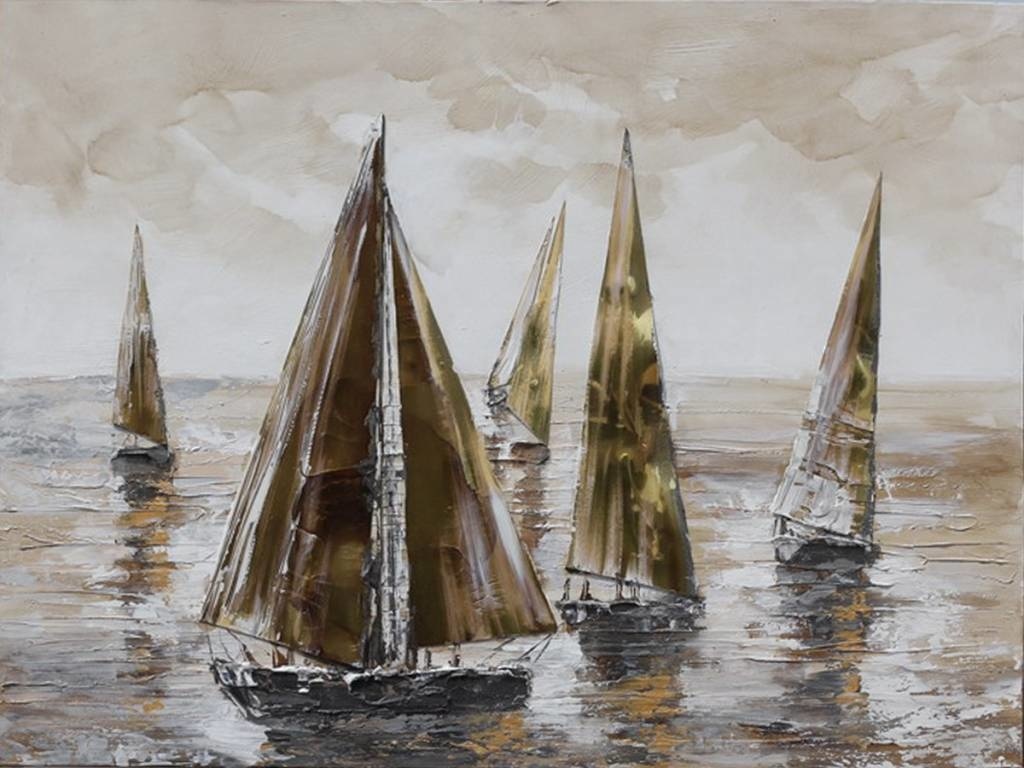 Möchten Sie ein Ölgemälde auf Leinwand, das auf altmodische Art und Weise und von den besten Kunsthandwerkern gemalt wurde? Dann ist diese Serie von Wanddekorationen genau das Richtige für Sie. Dieses große Gemälde, das Segelboote in verschiedenen Farben zeigt, wurde sorgfältig mit den feinsten Farbkompositionen und mit großer Aufmerksamkeit für den letzten Schliff angefertigt!