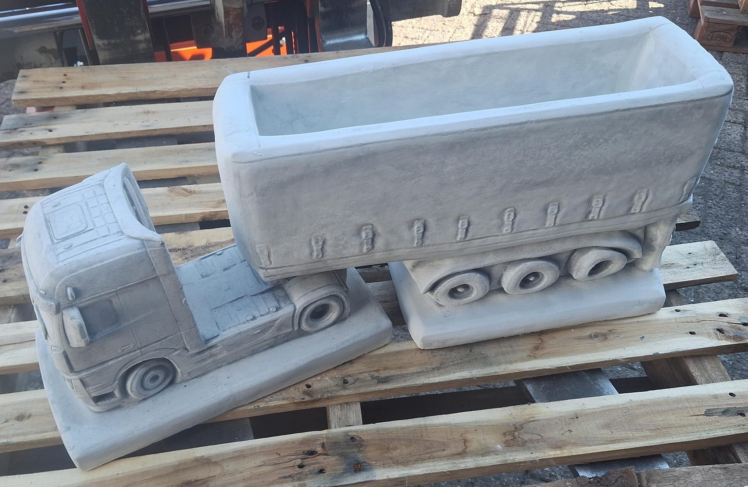 Mercedes aus Beton mit Segelanhänger als Blumenkasten 75cm