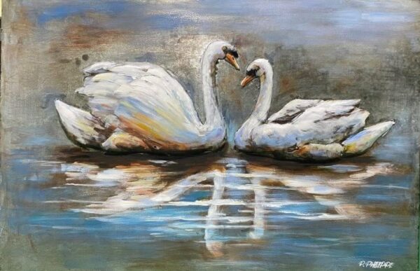 Metall 3d Malerei mit einem Schwanenpaar