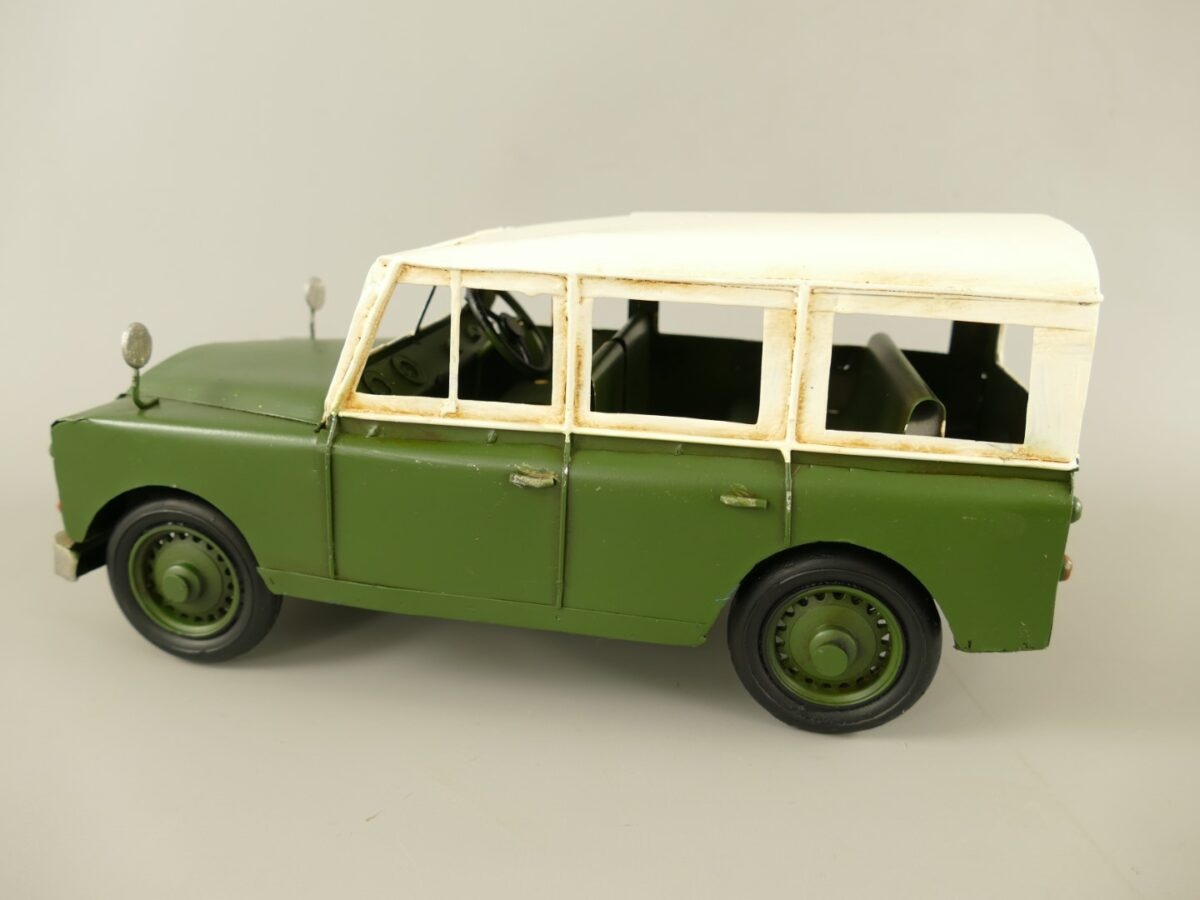 Miniaturmodell eines grünen Landrovers. Größe 30cm lang.