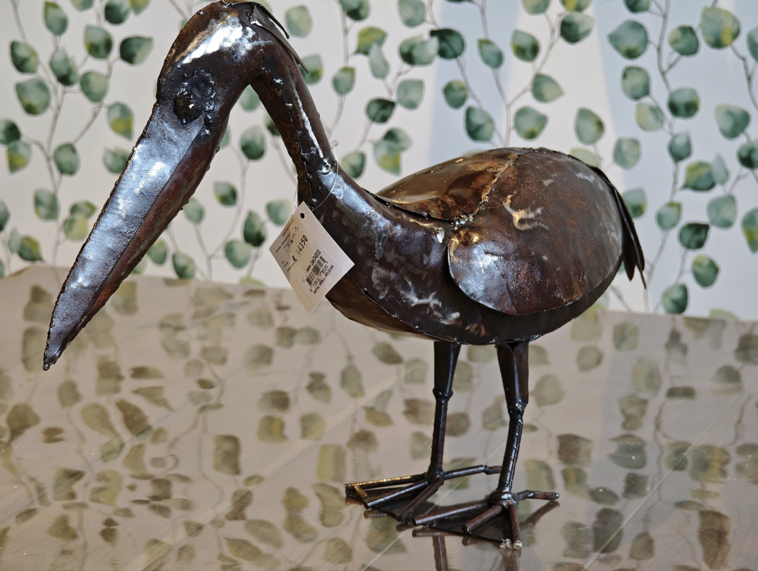 Da jedes Exemplar aus recycelten Materialien handgefertigt wird, ist kein Pelikan identisch. Dellen, Schweißnähte und Farbnuancen sind Teil des Charmes dieser ‚Altmetallkunst‘. Sie sind herzlich eingeladen, diese charaktervolle und umweltbewusste Skulptur in unserem Ausstellungsraum bei Eliassen zu besichtigen, oder sie einfach online zu bestellen.