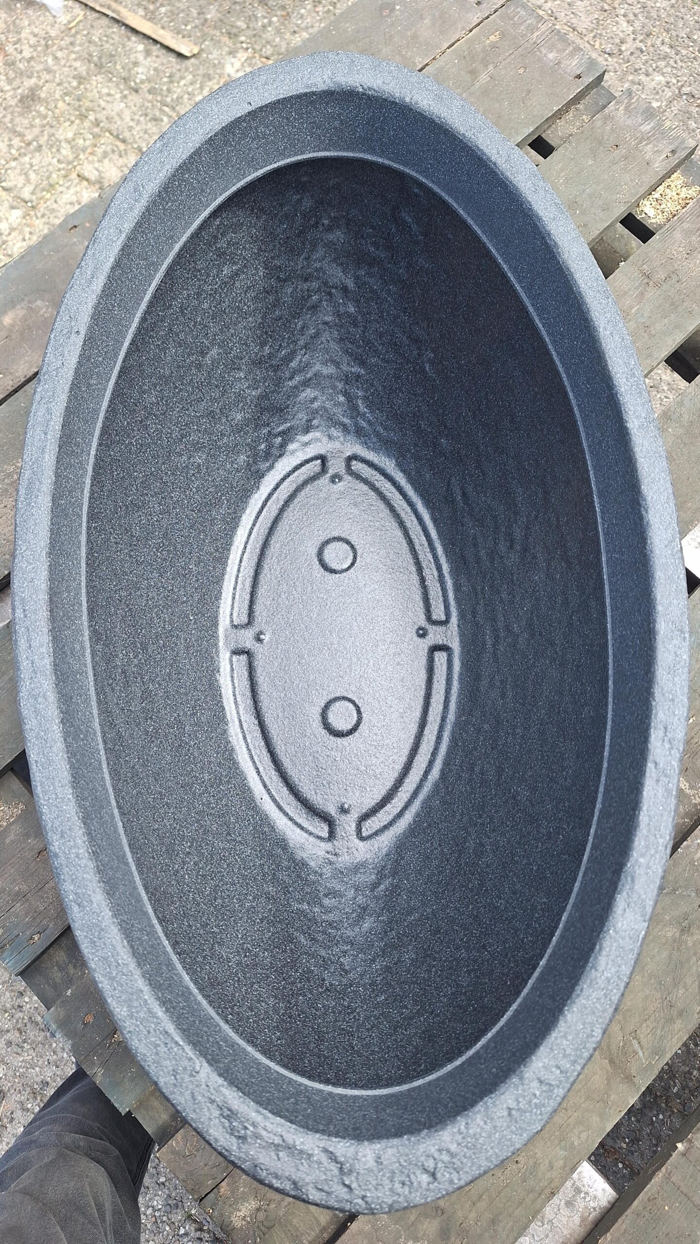 Wenn Sie ein großes, anthrazitfarbenes, ovales Pflanzgefäß wünschen, das für praktisch alle Pflanzen geeignet, sehr stabil, farbecht und leicht ist, dann ist die Wahl für diesen Topf schnell getroffen. Diese große, leichte, ovale Schale ist kaum von einer echten Schale zu unterscheiden, denn ihre Farbe und ihr Aussehen entsprechen genau einem Topf aus Stein.