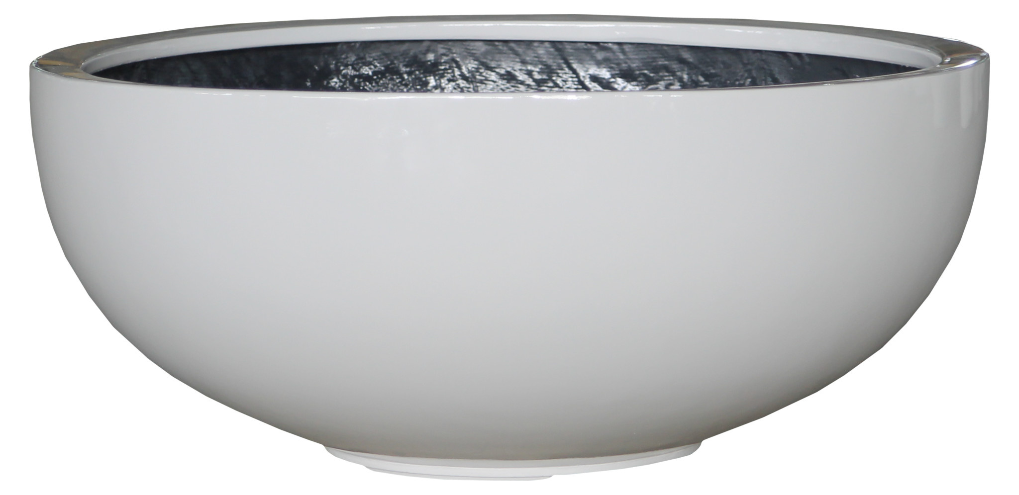 Schöne breite Schale aus Polystone. Diese Pflanzschale wird ein schönes Dekorationsstück für Ihr Zuhause oder Ihr Geschäft sein. Sie können diesen wuchtigen Topf in mattem Weiß mit Ihren anderen Möbeln in fast jeder modernen Einrichtung kombinieren. Polystone ist ein Material aus Steinsplitt/Pulver, das mit einem Kunstharz vermischt ist. Diese Mischung, kombiniert mit Glasfasermatten, ist ein sehr starkes Material, das ideal für dieses Produkt geeignet ist. Als Finish wurde ein Hochglanzlack verwendet, der mit Autolack verglichen werden kann.