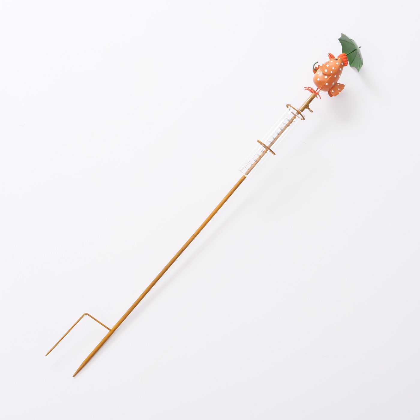 Dieser orange/weiße Regenmesser wird in jedem Garten einen schönen Platz finden.