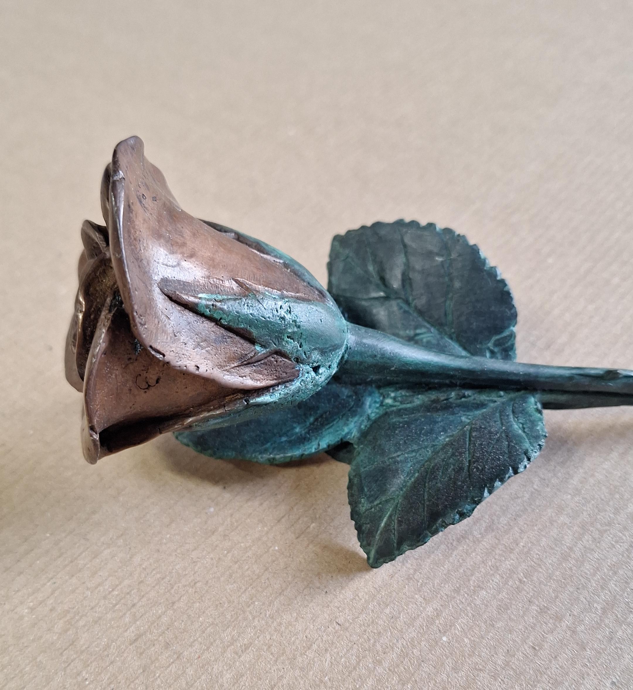 Diese modellierte Bronzestatue einer Rose ist eine schöne Dekoration für einen Grabstein, für eine Urne oder für jeden anderen Ort, an dem Sie gedenken möchten.