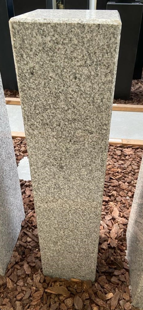 Diese Säulen bestehen aus naturweißem bis cremig-mattem Granit. Die Säulen sind an den Ecken auf der Innenseite extra verstärkt.