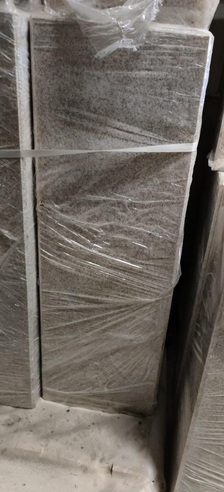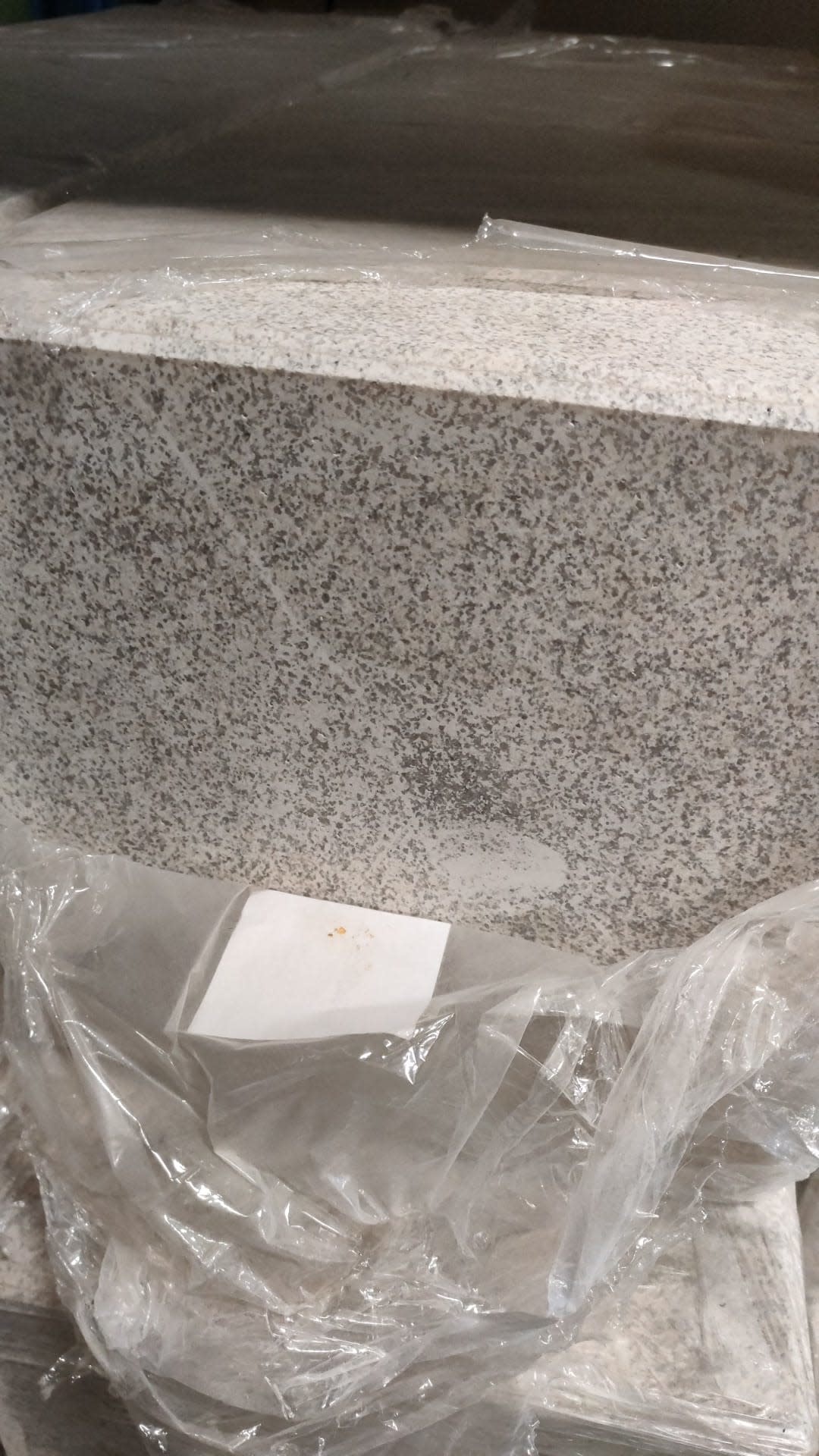 Diese Säulen bestehen aus naturweißem bis cremefarbenem, mattem Granit. Die Säulen sind an den Ecken auf der Innenseite extra verstärkt.