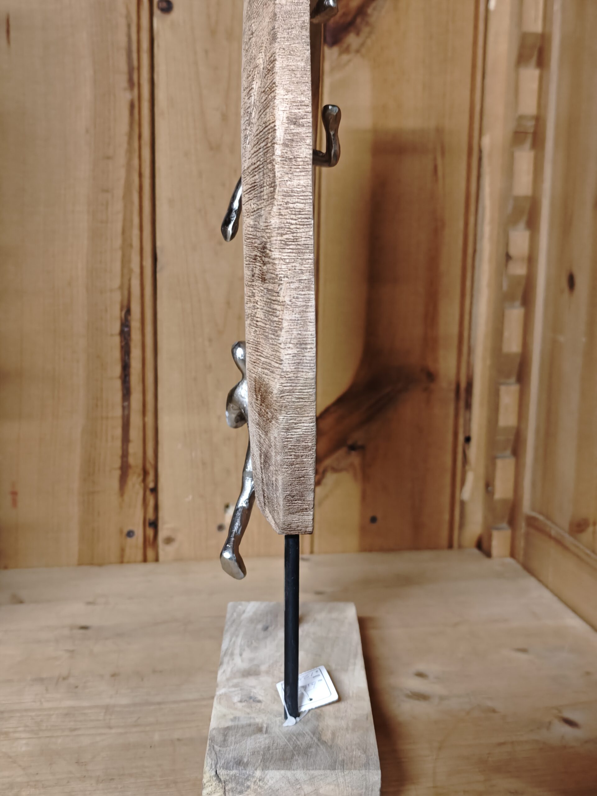 Diese Aluminiumfigur wird mit Mangoholz kombiniert. Mangoholz ist eine nachhaltige Laubholzart und ökologisch unbedenklich, da es verwendet wird, nachdem der Baum keine Früchte mehr trägt.