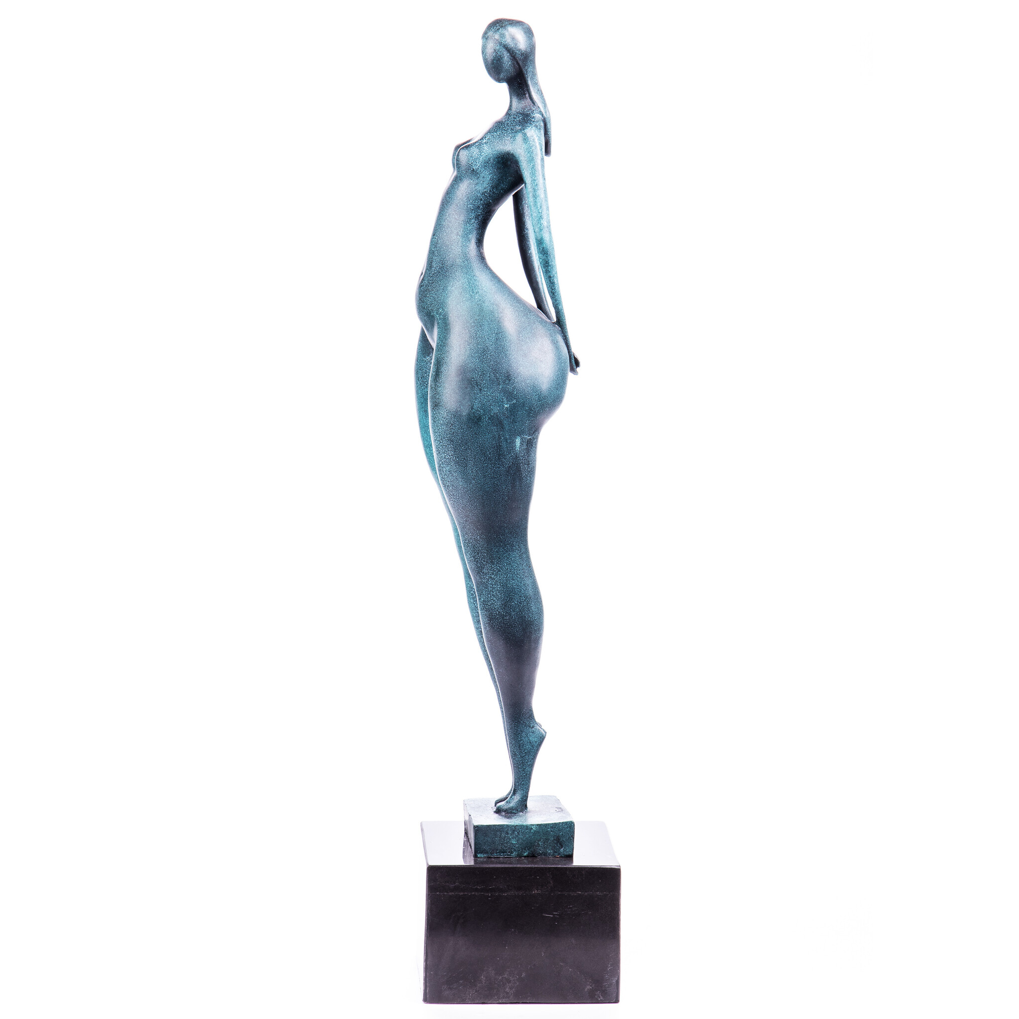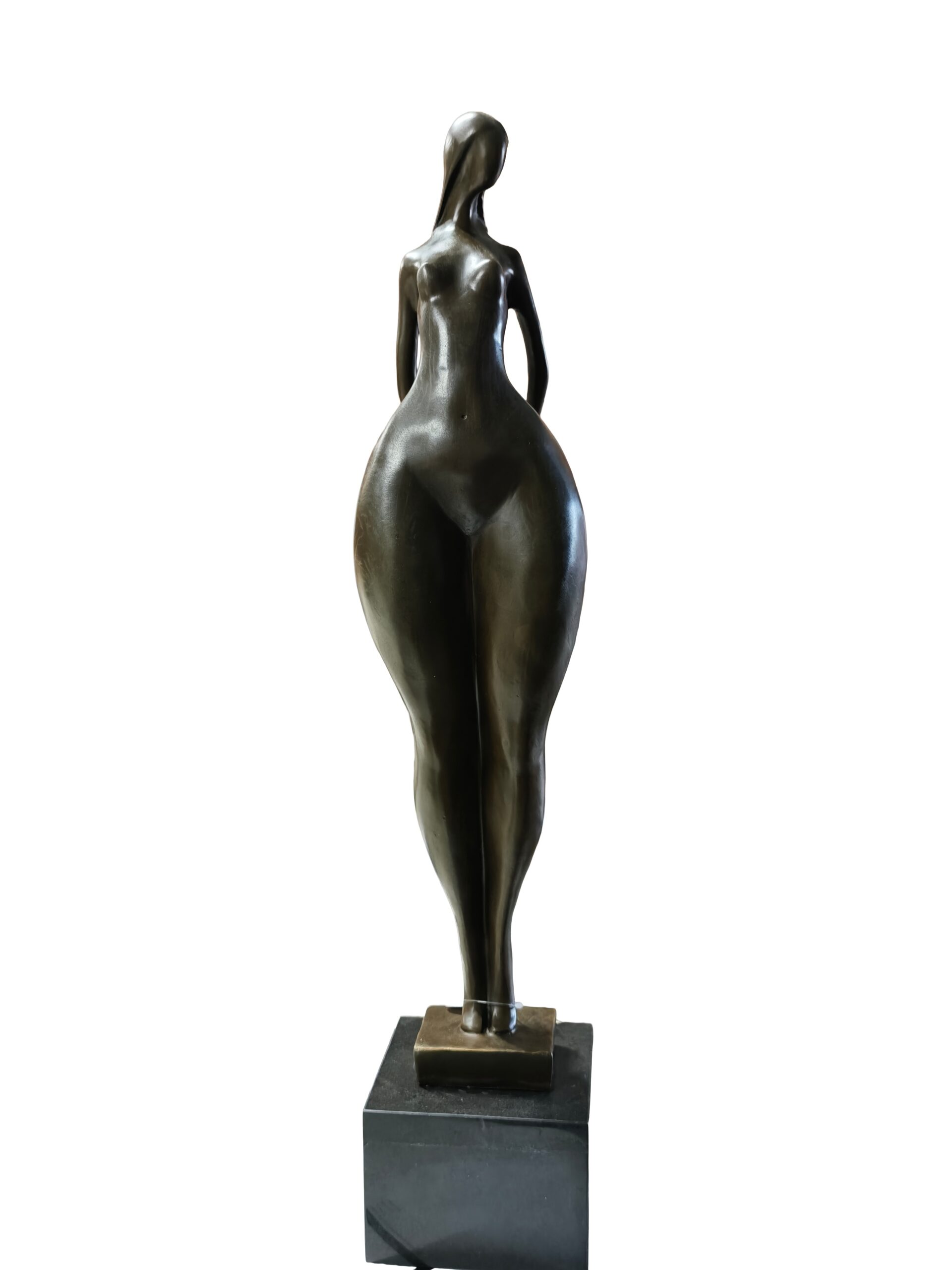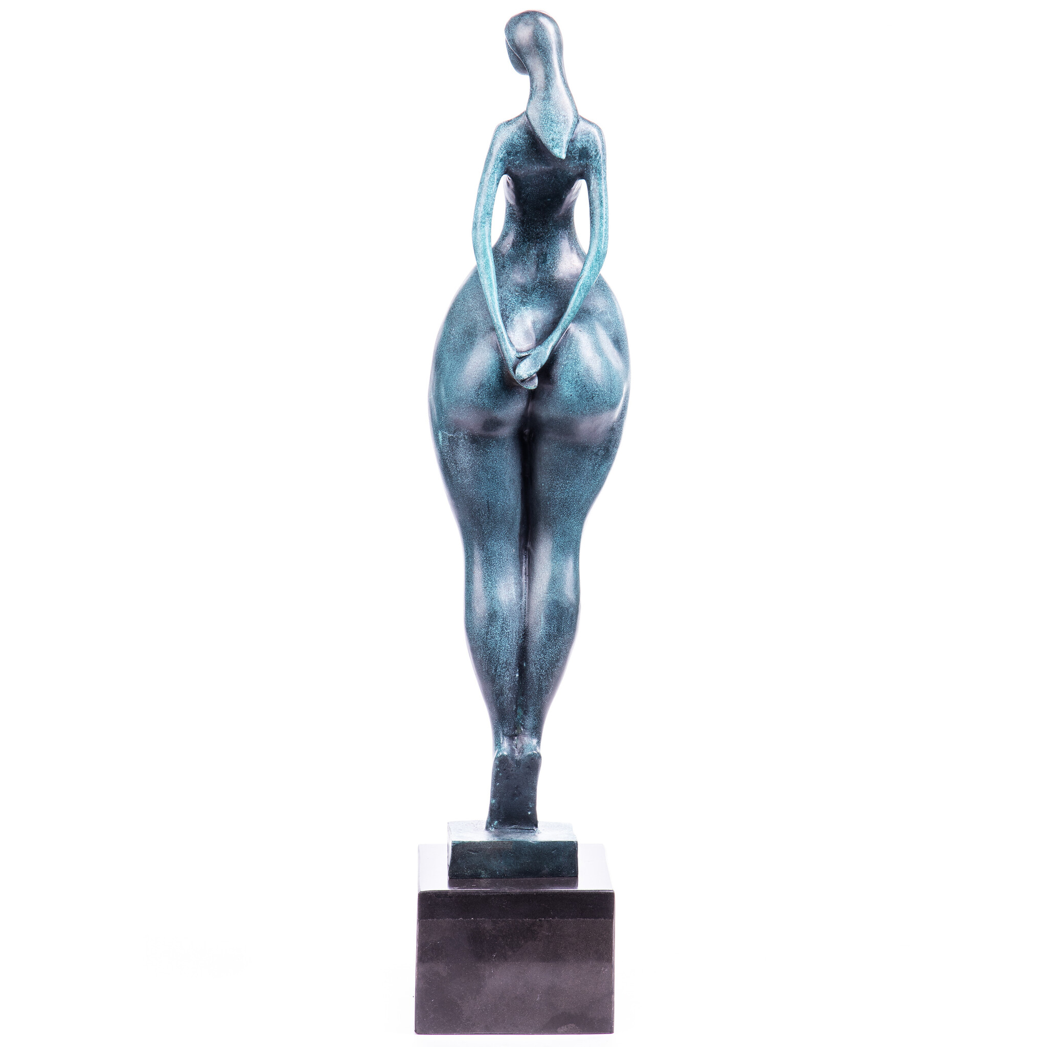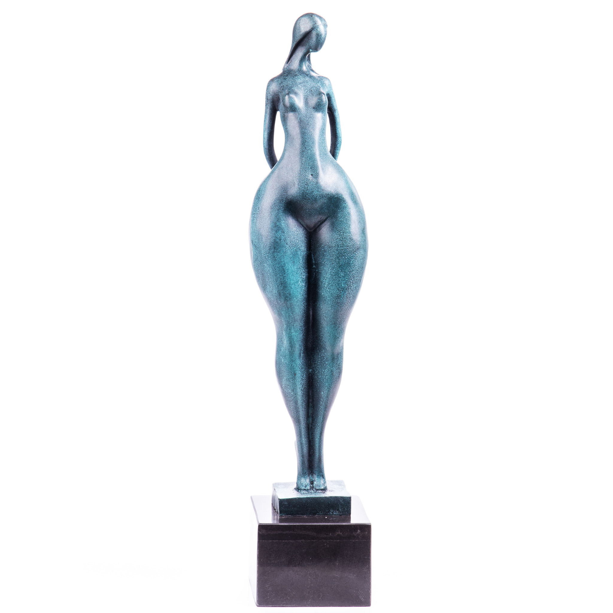 Schöne Bronzeskulptur einer Frau mit breiten Hüften. Sehr schön detailliert und traditionell nach dem Wachsausschmelzverfahren hergestellt. Diese Skulptur ist wetterfest blau patiniert.