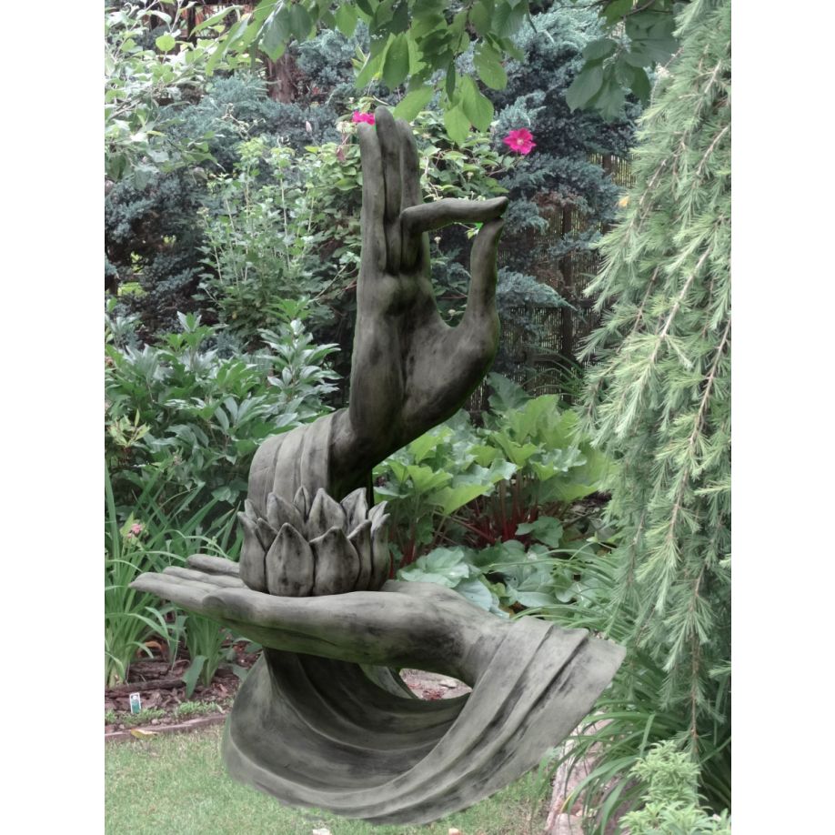 Wunderschön ist diese Skulptur von 2 Händen in Yogapose, perfekt detailliert und gräulich verwaschen. Diese Statue ist aus hochwertigem, massivem Steinguss gefertigt, an dem Sie jahrelang Freude haben werden. Diese Skulptur ist nicht nur in Ihrem Garten wunderschön, sondern macht auch in Innenräumen oder in der Nähe Ihres Geschäfts eine gute Figur. Steht stabil auf einer stabilen Bodenplatte. Ausgestattet mit einem losen Halter.