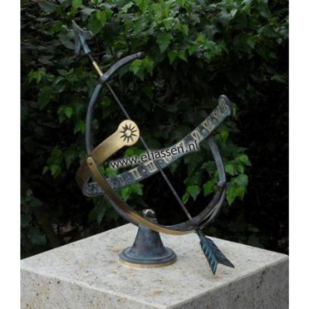 Der Kupfergehalt dieser Bronzesonnenuhr beträgt mindestens 75%. Dies garantiert eine sehr lange Lebensdauer. Die meisten Statuen haben an der Unterseite ein M8-Gewinde, mit dem Sie die Statue z.B. an einer Säule befestigen können.