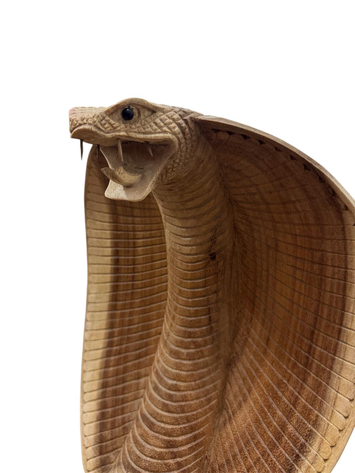 Ein wunderschönes Stück Handwerkskunst, diese Kobra-Schlange, handgefertigt aus massivem Suar-Holz.