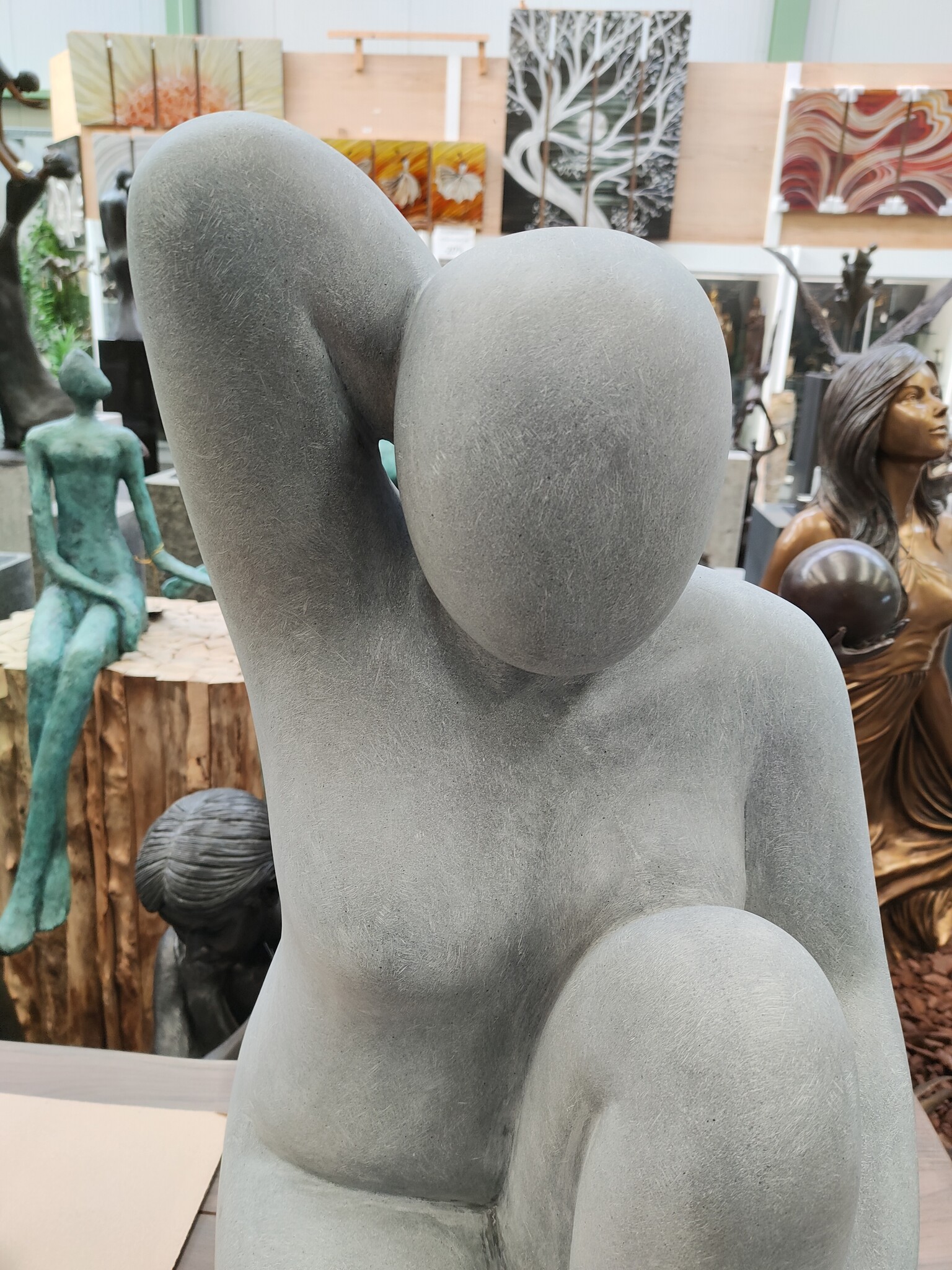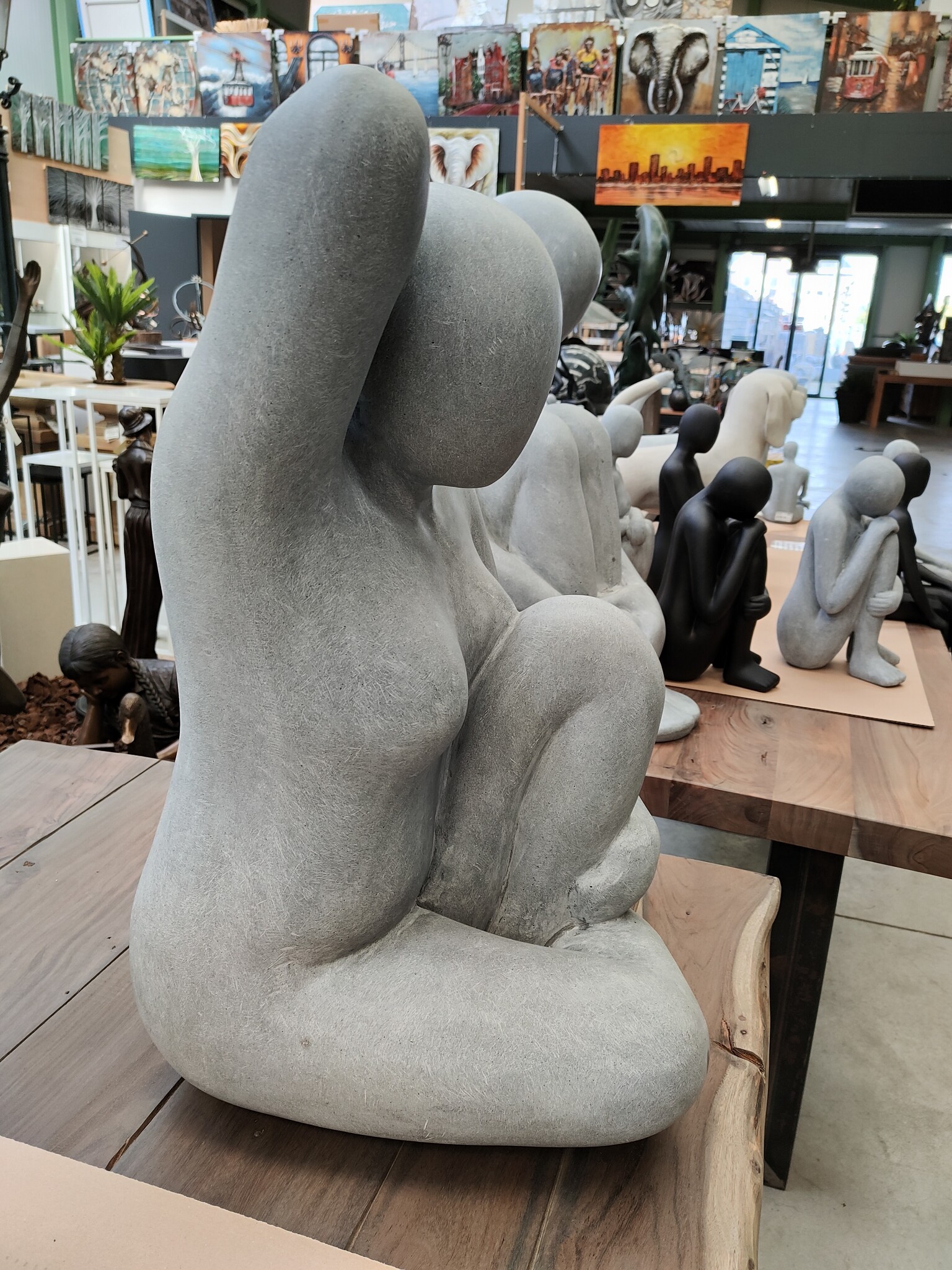 Holen Sie sich pure Schönheit in Ihr Haus oder Ihren Garten mit dieser modern geformten großen Statue einer Frau in grauem Finish.