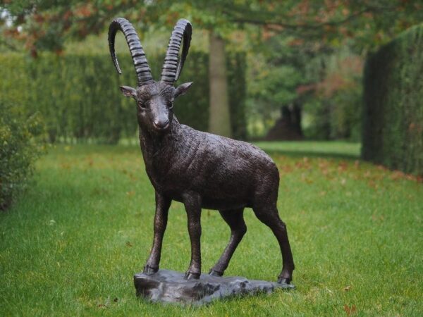 Wunderschöne Bronzestatue eines stehenden Steinbocks aus 100% hochwertiger Bronze mit einem Mindestkupfergehalt von 75%, der eine sehr lange Lebensdauer und keine unschönen Flecken garantiert. Ein schönes und langlebiges Dekorationsobjekt für Haus, Geschäft oder Garten sowie ein wunderbares Geschenk. Suchen Sie eine Bronzestatue für ein Jubiläum? Wir können auch Textschilder für den Sockel liefern.