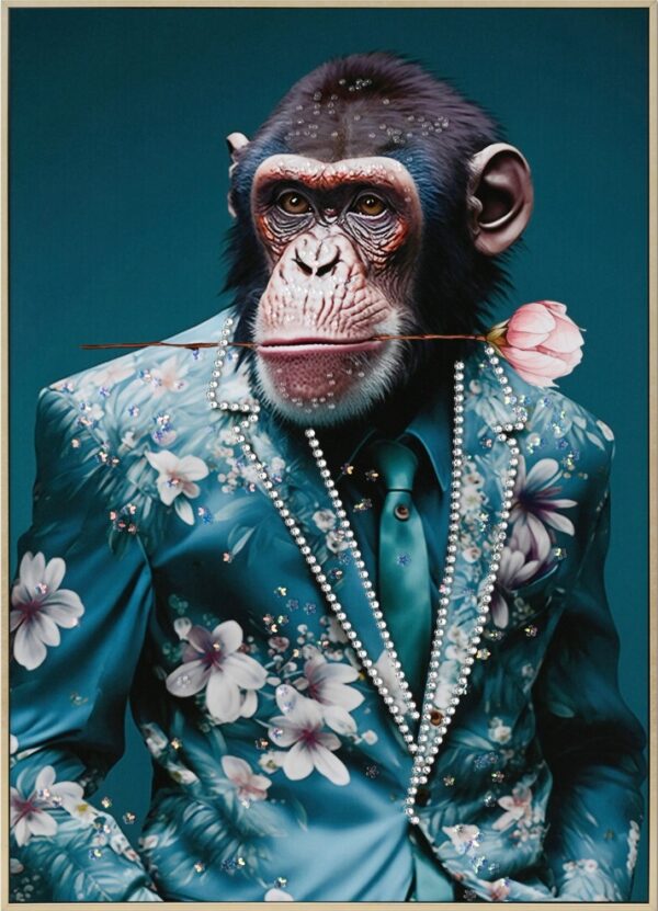 Strass Gemälde im Rahmen Schöner Affe im Anzug 53x73cm Hochglanz