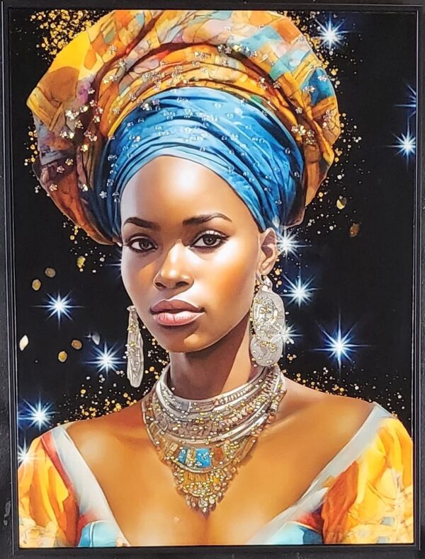 Sind Sie auf der Suche nach einem hypermodernen Leinwandbild mit verschiedenen Strass-Akzenten? Dann ist dieses Modellbild mit einer schönen Dame auf dunklem Hintergrund genau das Richtige für Sie. Dieses große Leinwandgemälde hat sehr schöne Akzente mit Strasssteinen auf dem Schmuck und dem Kopftuch der Dame. Es wurde sorgfältig mit den feinsten Farbkompositionen und mit großer Aufmerksamkeit für den letzten Schliff gefertigt!