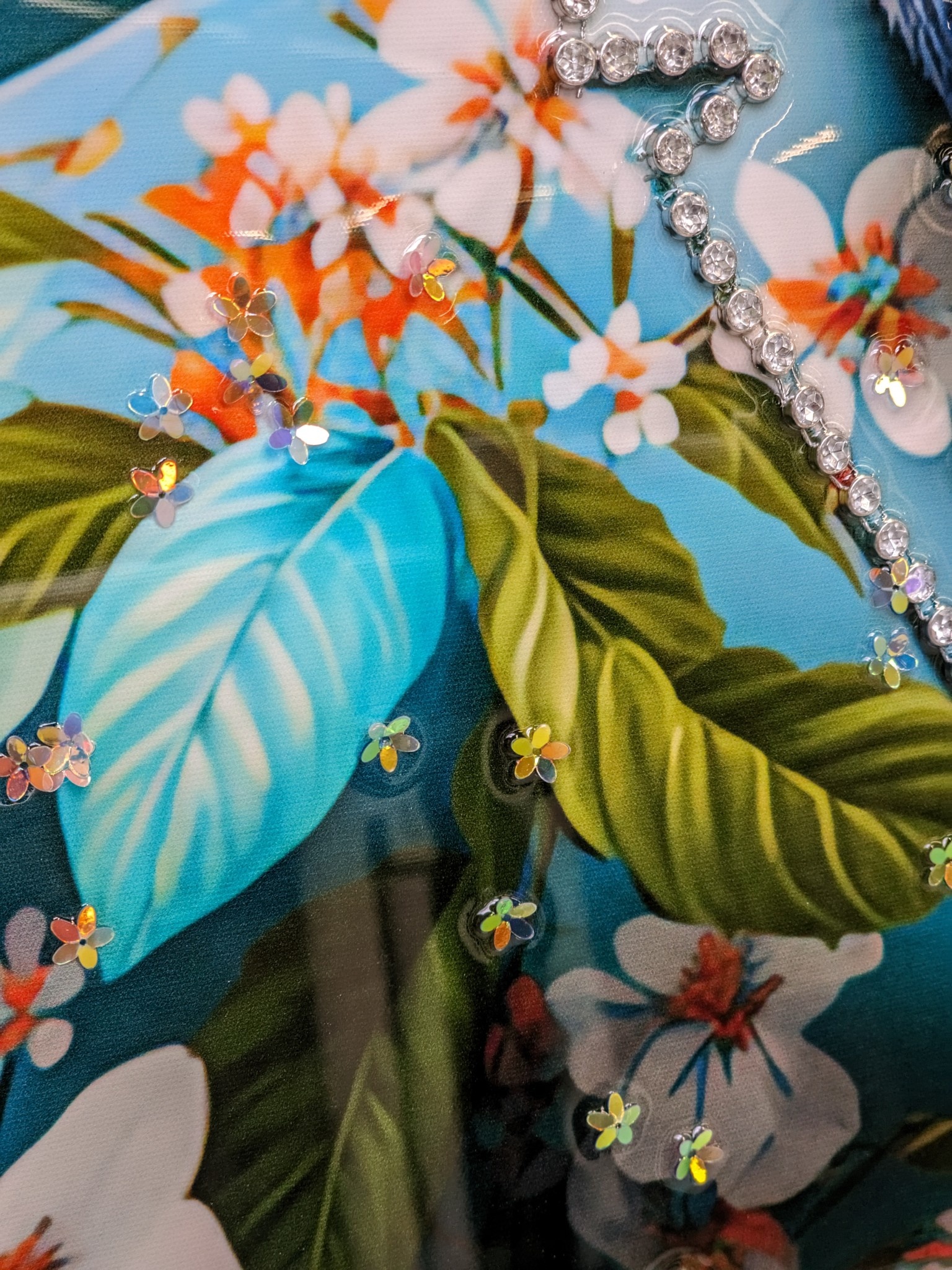 Modernes Leinwandbild mit vielen Strass-Akzenten.