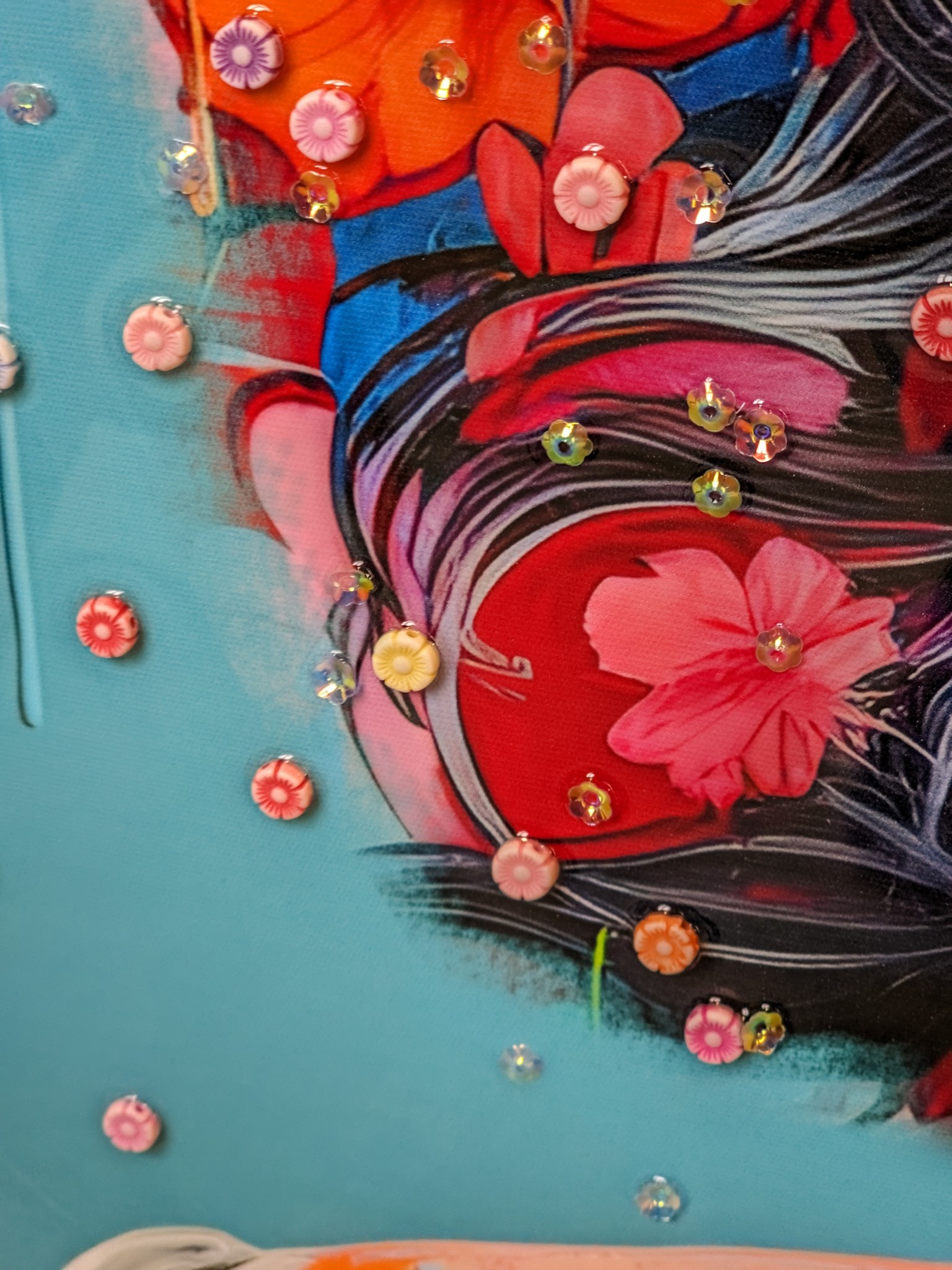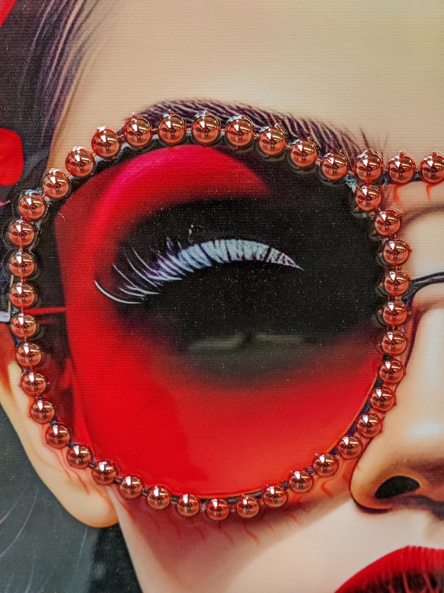 Modernes Leinwandbild mit vielen Strass-Akzenten.