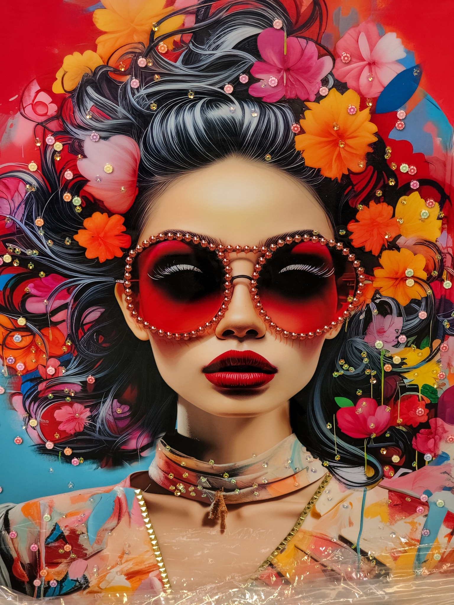 Sind Sie auf der Suche nach einem hypermodernen Leinwandbild mit verschiedenen Strass-Akzenten? Dann ist dieses Modellgemälde, das eine moderne Dame auf einem farbigen Hintergrund zeigt, genau das Richtige für Sie. Dieses quadratische Leinwandgemälde hat sehr schöne Steinakzente auf der Brille der Dame und der Umgebung. Es wurde sorgfältig mit den feinsten Farbkompositionen und mit viel Liebe zum Detail gefertigt!
