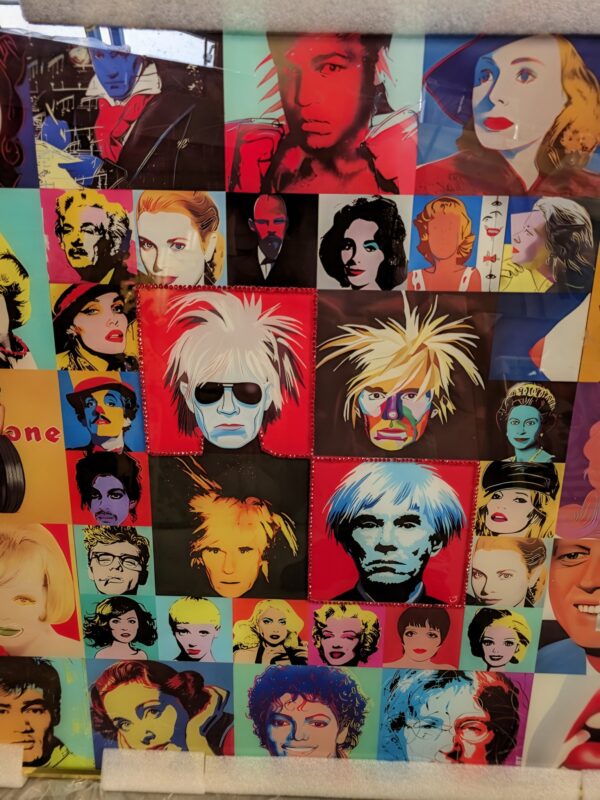 Sind Sie auf der Suche nach einem hypermodernen Glasgemälde mit verschiedenen Strassstein-Akzenten? Dann ist dieses Modell Glasgemälde mit einer großen Anzahl von Prominenten in verschiedenen Quadraten bestimmt etwas für Sie. Dieses quadratische Glasgemälde hat sehr schöne Steinakzente auf einem Paar Quadraten in der Mitte. Es wurde sorgfältig mit den schönsten Farbkompositionen und mit großer Aufmerksamkeit für die Feinheiten gefertigt!