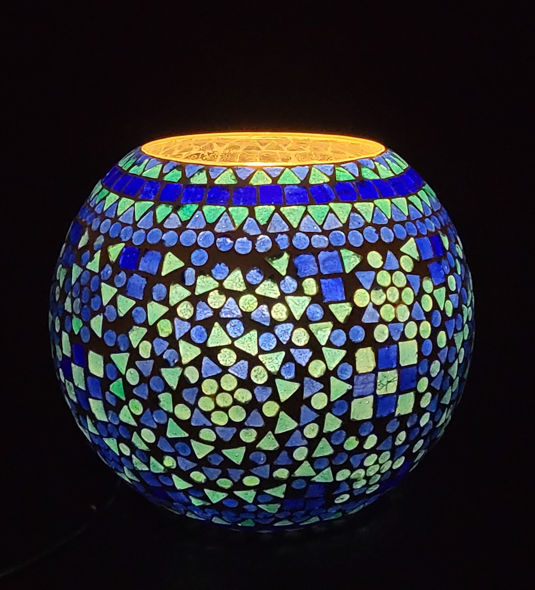 Tischlampe Glasmosaik blaue Kugel 21x21x19cm.