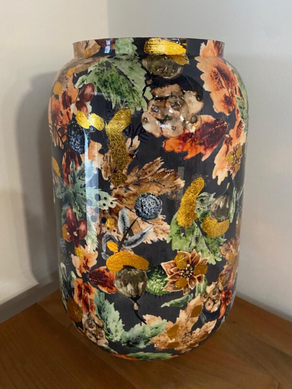 Trotz der Tatsache, dass diese Topfserie wasserdicht ist, ist es ratsam, einen passenden wasserdichten Topf oder eine Vase in den Übertopf zu stellen, in dem die frischen Blumen ankommen werden, um Rost zu vermeiden. Bei Seidenblumen ist das natürlich nicht nötig.
